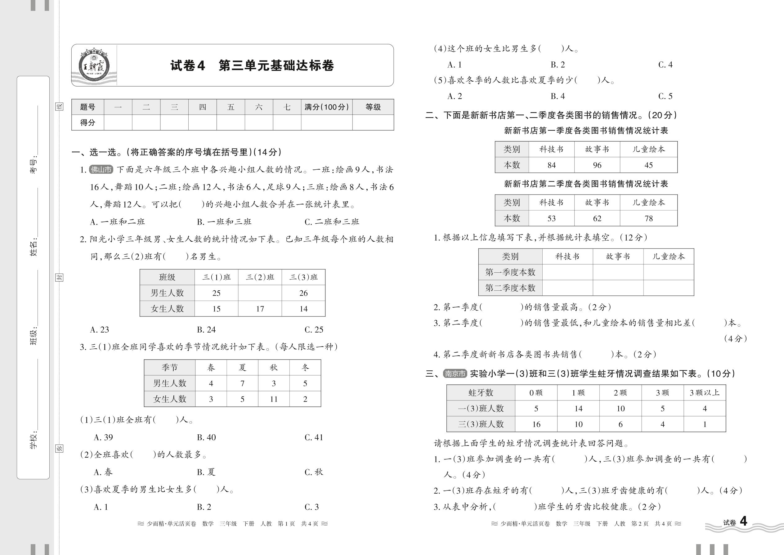 2024春下册三年级数学人教版 第三单元基础达标卷【4】