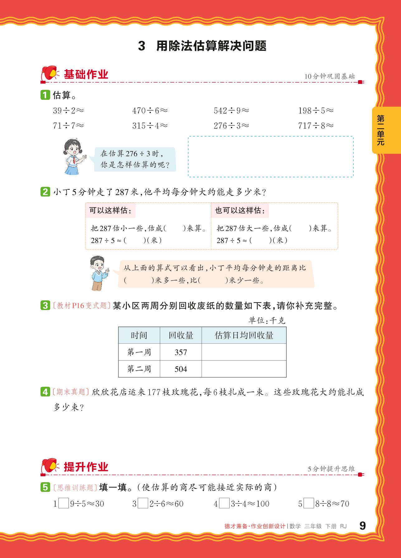 2024春下册三年级数学人教版 第二单元 除数是一位数的除法——3. 用除法估算解决问题
