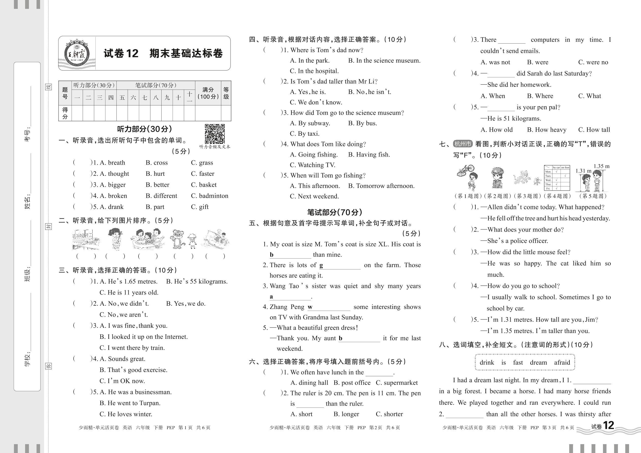 2024春下册六年级英语人教PEP版 期末基础达标卷【12】
