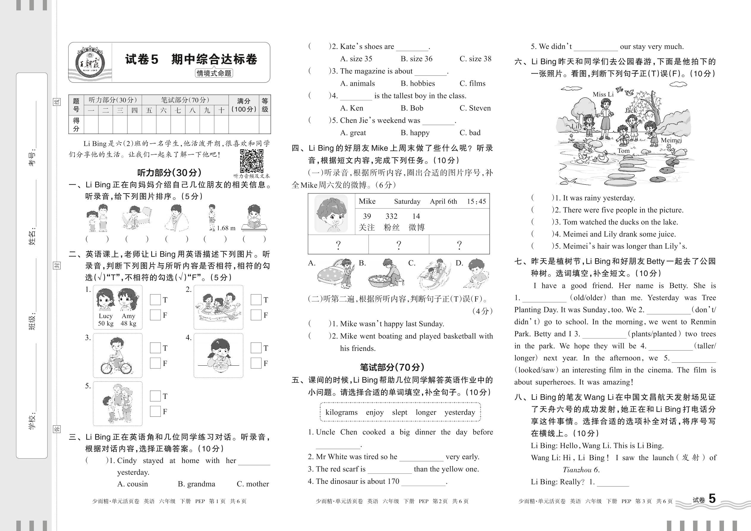 2024春下册六年级英语人教PEP版 期中综合达标卷【5】