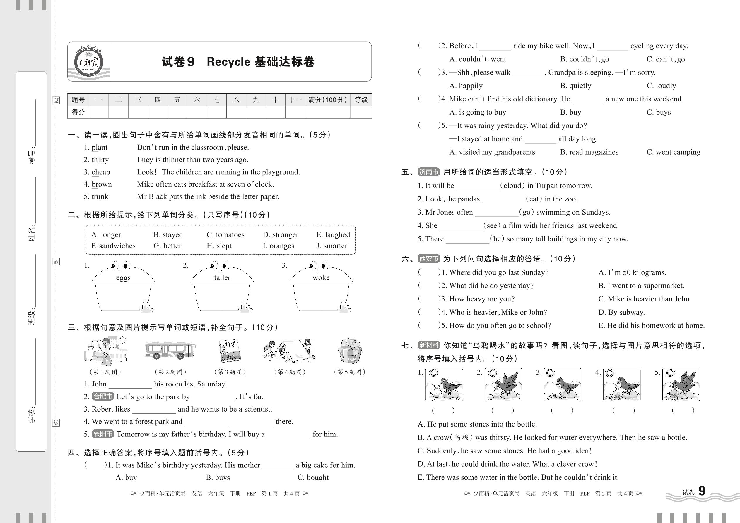 2024春下册六年级英语人教PEP版 Recycle 基础达标卷【9】
