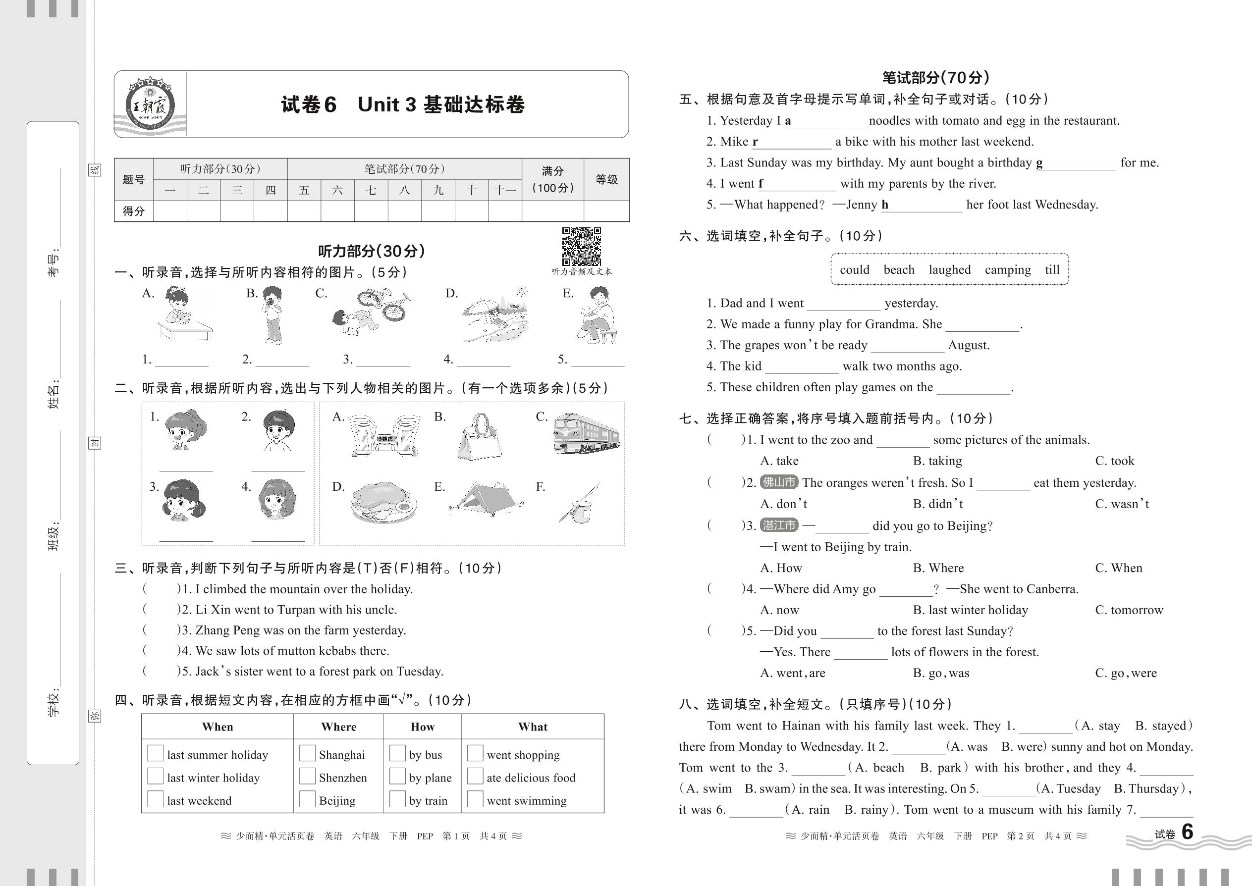 2024春下册六年级英语人教PEP版 Unit 3 基础达标卷【6】