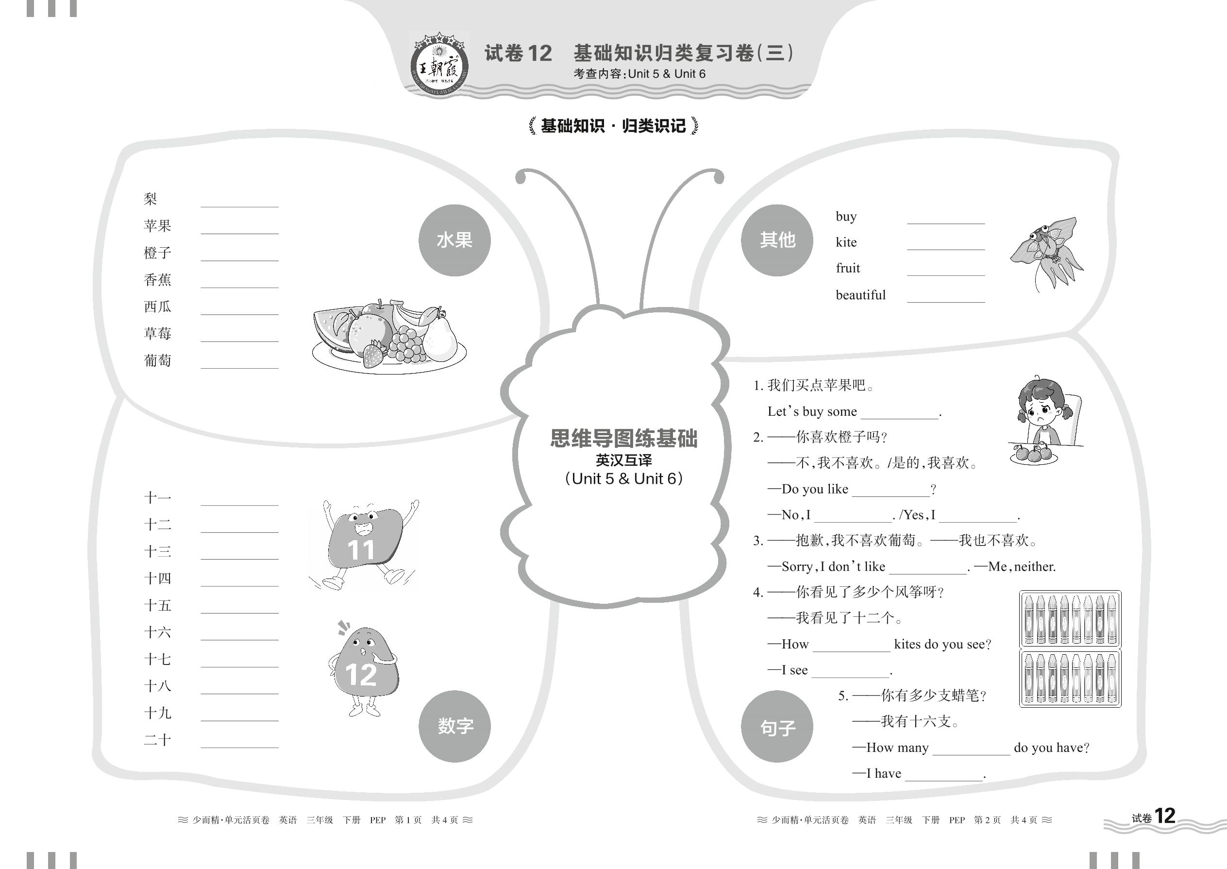 2024春下册三年级英语人教PEP版 Unit 5-6基础知识归类复习卷(三)【12】
