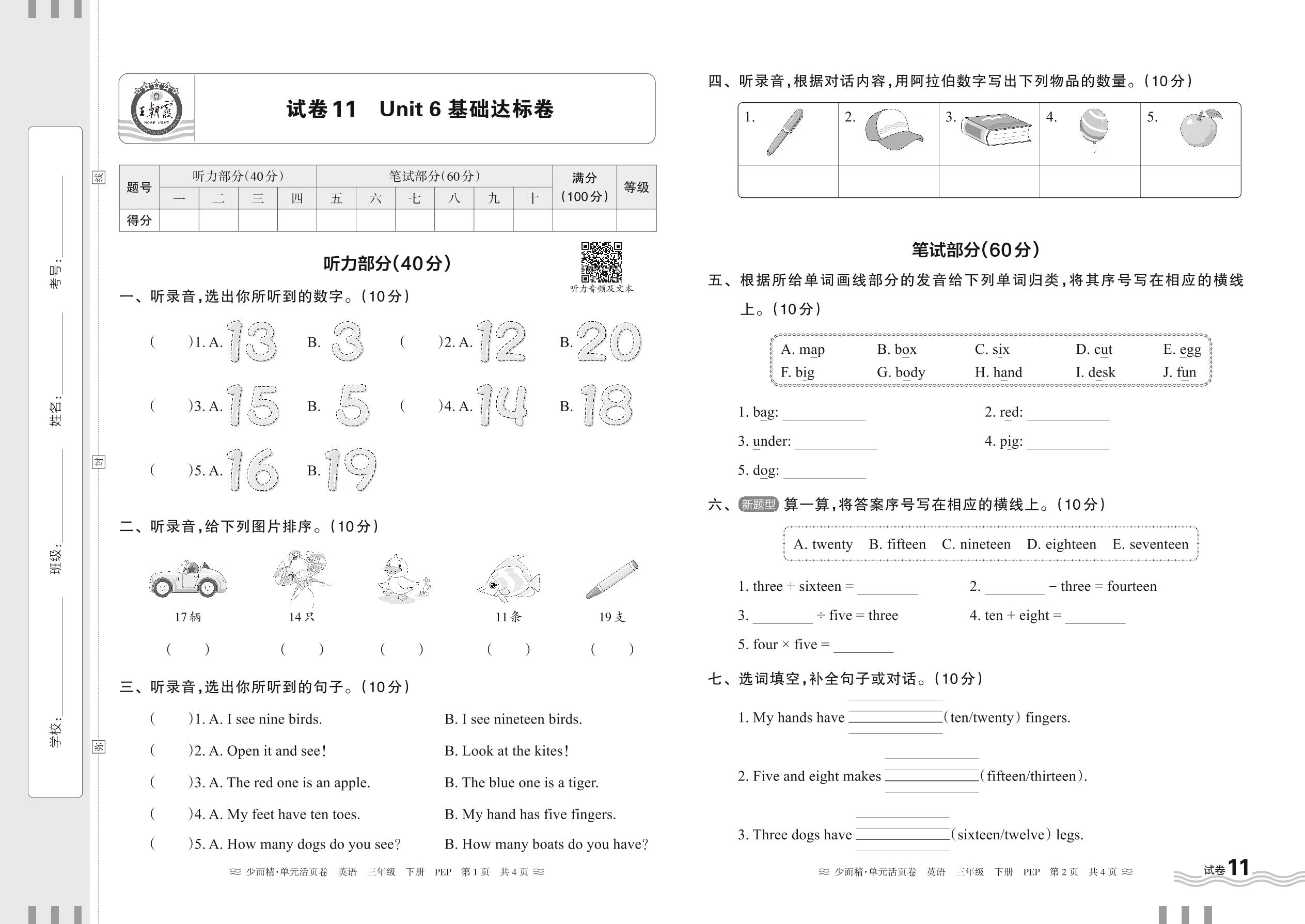 2024春下册三年级英语人教PEP版 Unit 6 基础达标卷【11】