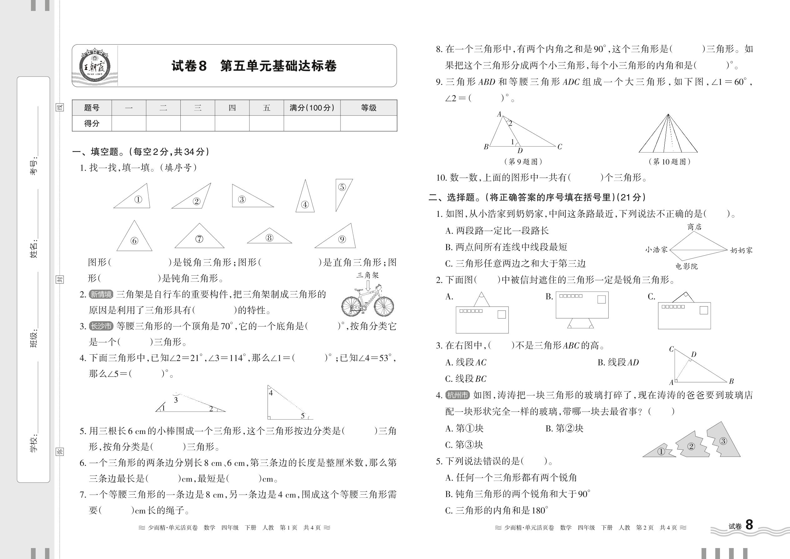 2024春下册四年级数学人教版 第五单元基础达标卷【8】