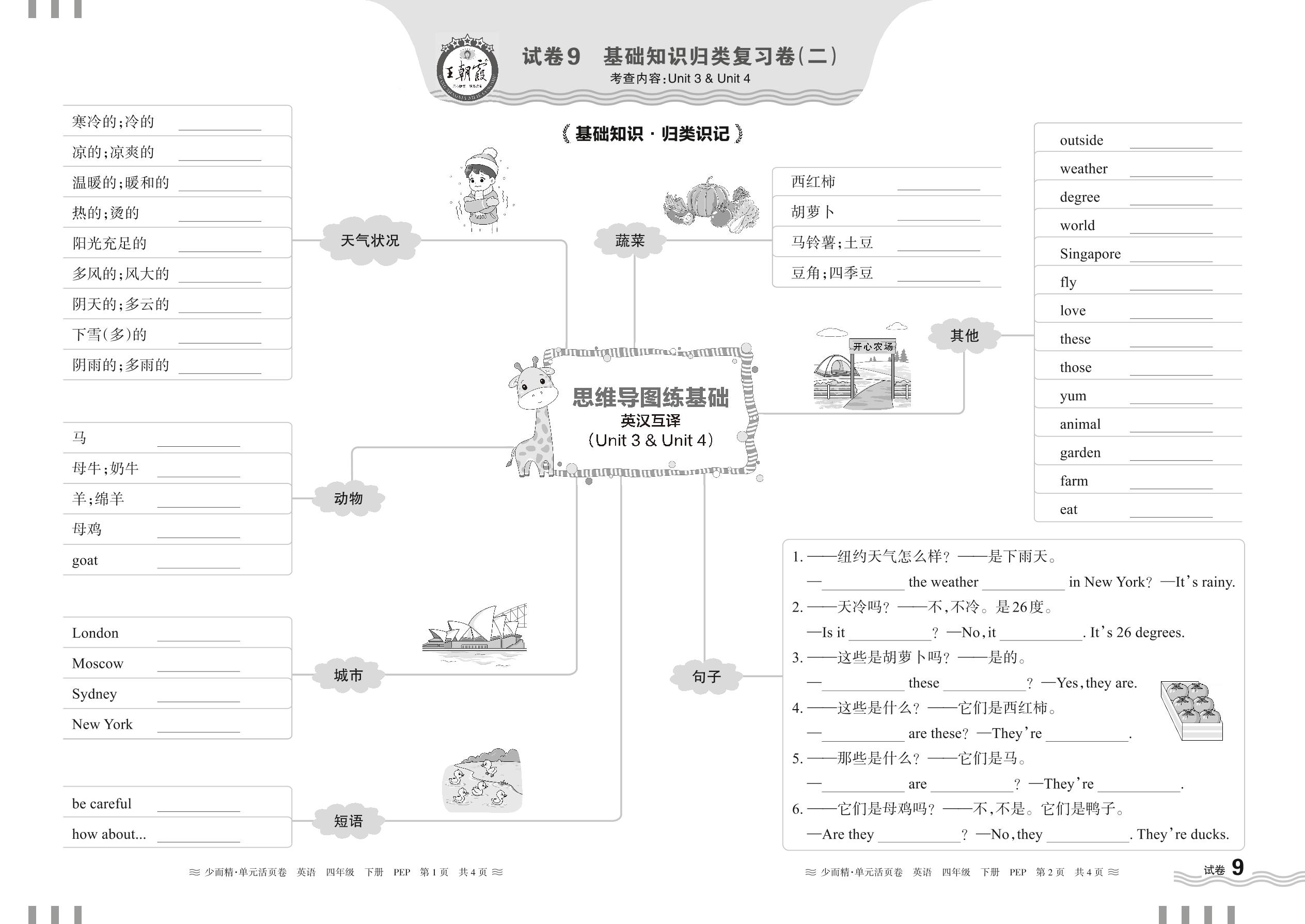 2024春下册四年级英语人教PEP版 Unit 3-4基础知识归类复习卷(二)【9】