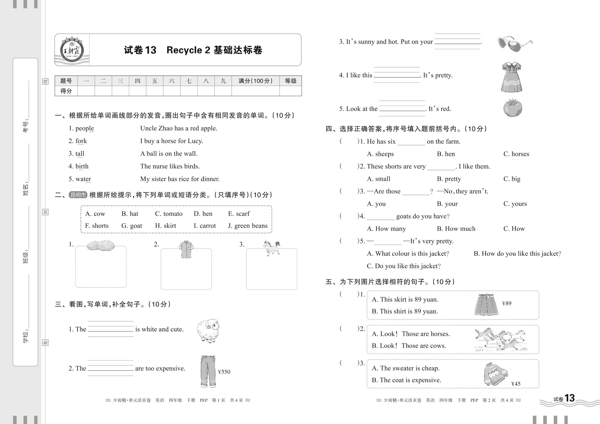 2024春下册四年级英语人教PEP版 Recycle 2 基础达标卷【13】