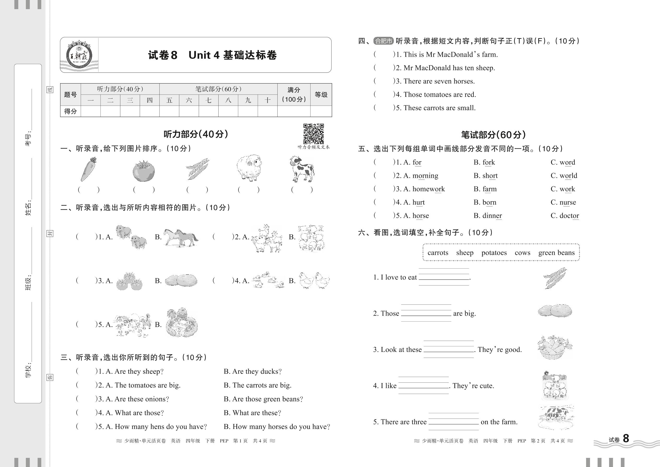 2024春下册四年级英语人教PEP版 Unit 4 基础达标卷【8】