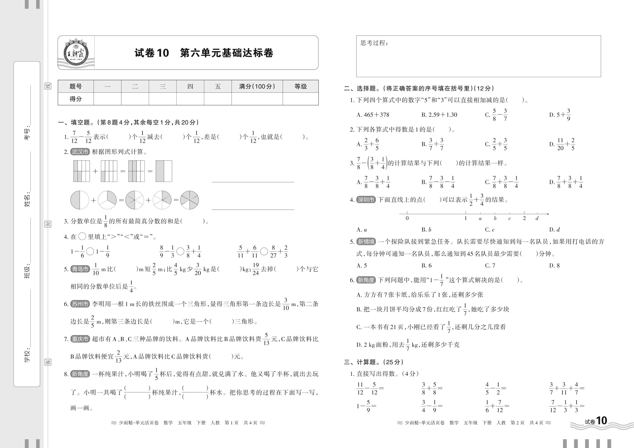 2024春下册五年级数学人教版 第六单元基础达标卷【10】