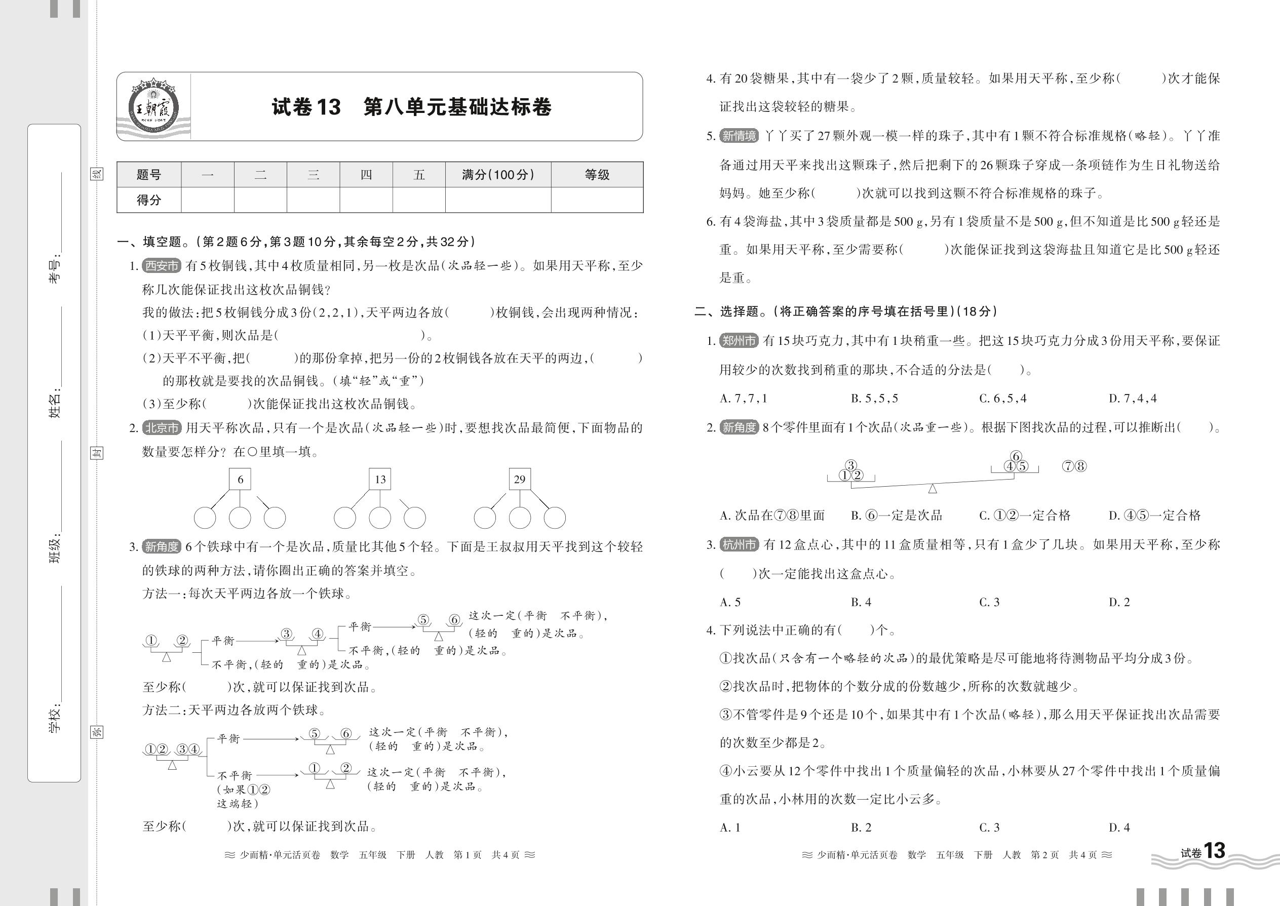 2024春下册五年级数学人教版 第八单元基础达标卷【13】