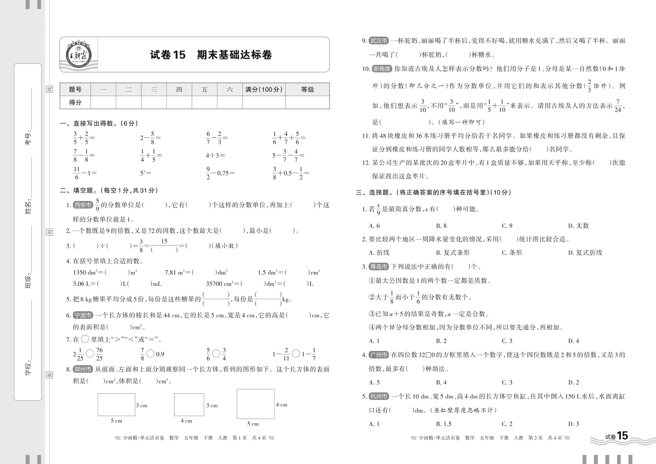 2024春下册五年级数学人教版 期末基础达标卷【15】