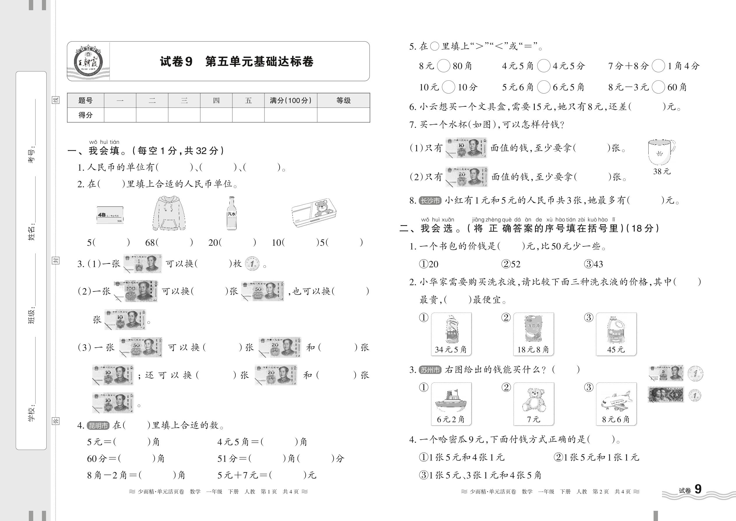 2024春下册一年级数学人教版 第五单元基础达标卷【9】