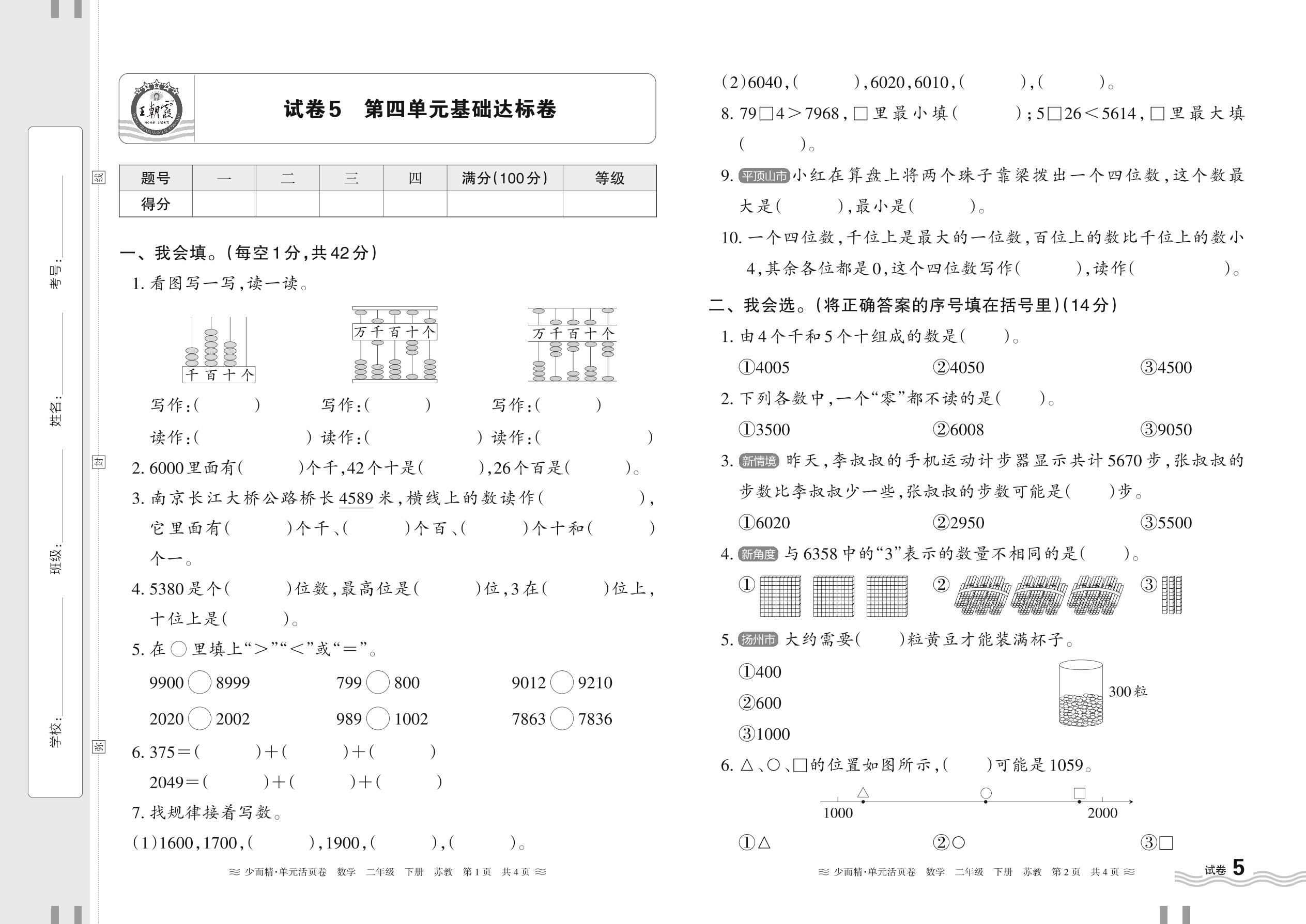 2024春下册二年级数学苏教版 第四单元基础达标卷【5】