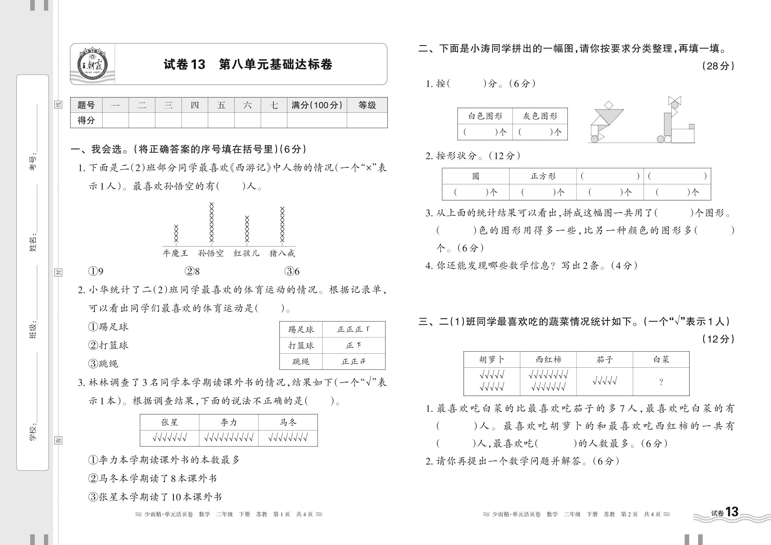 2024春下册二年级数学苏教版 第八单元基础达标卷【13】