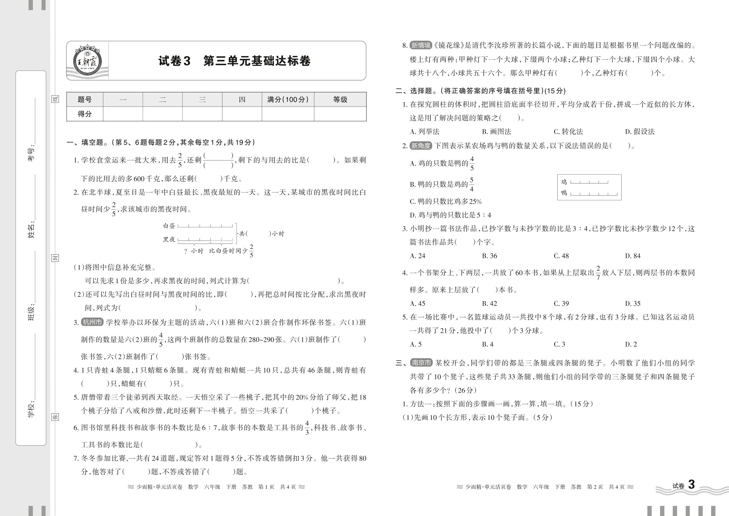 2024春下册六年级数学苏教版 第三单元基础达标卷【3】
