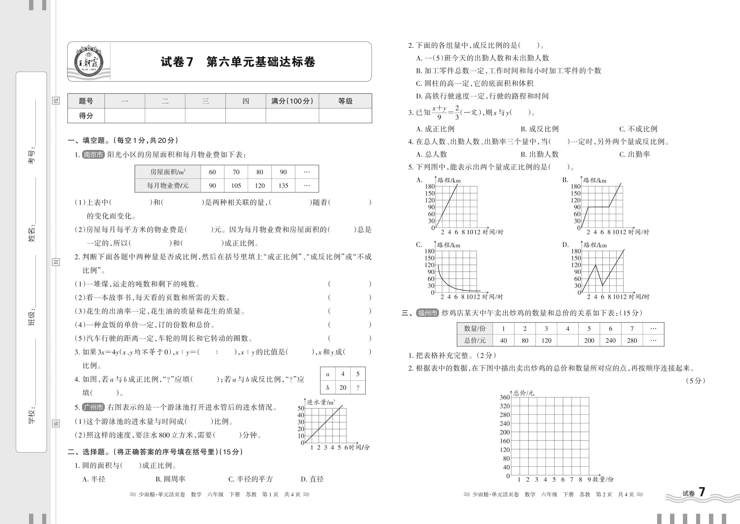2024春下册六年级数学苏教版 第六单元基础达标卷【7】