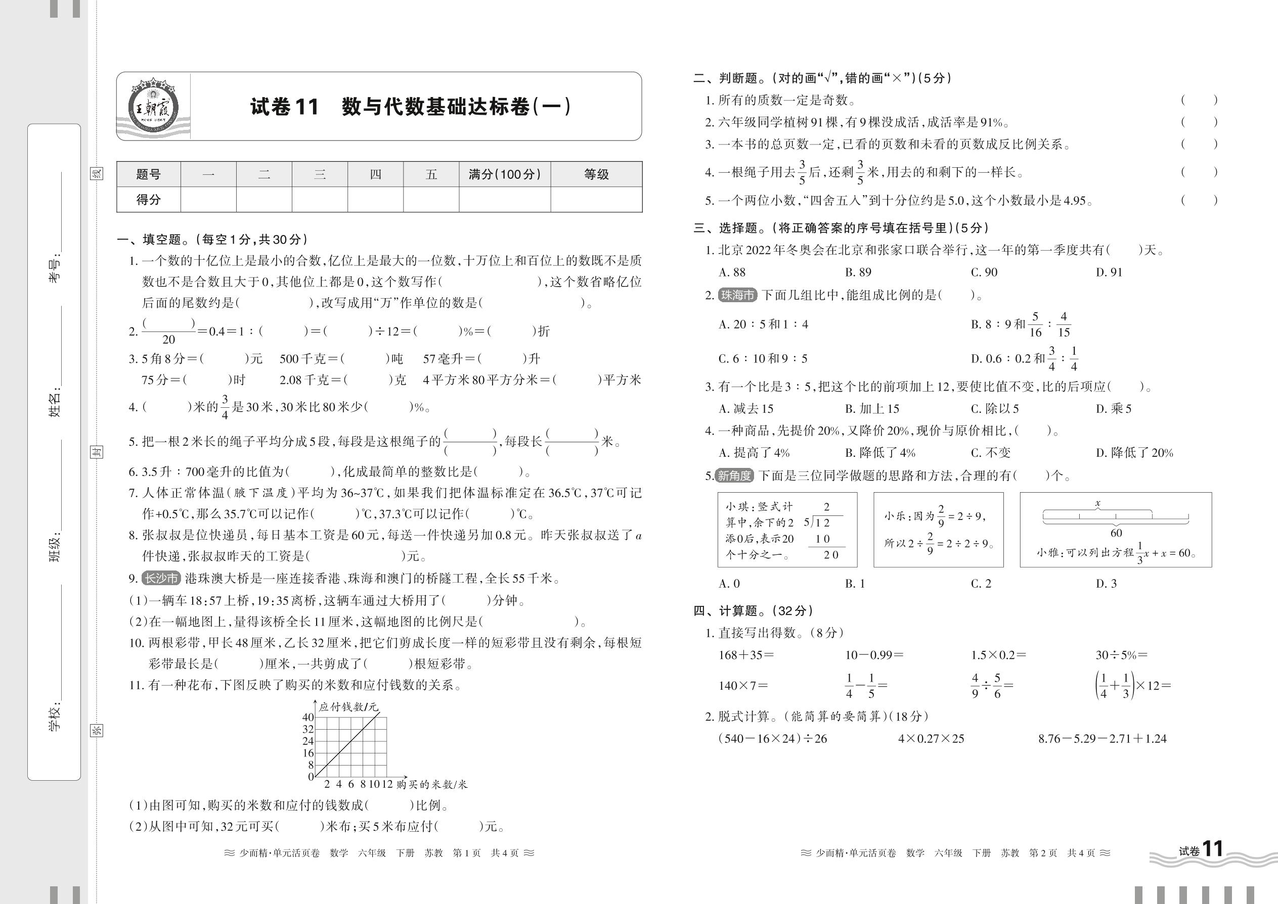 2024春下册六年级数学苏教版 数与代数基础达标卷(一)【11】