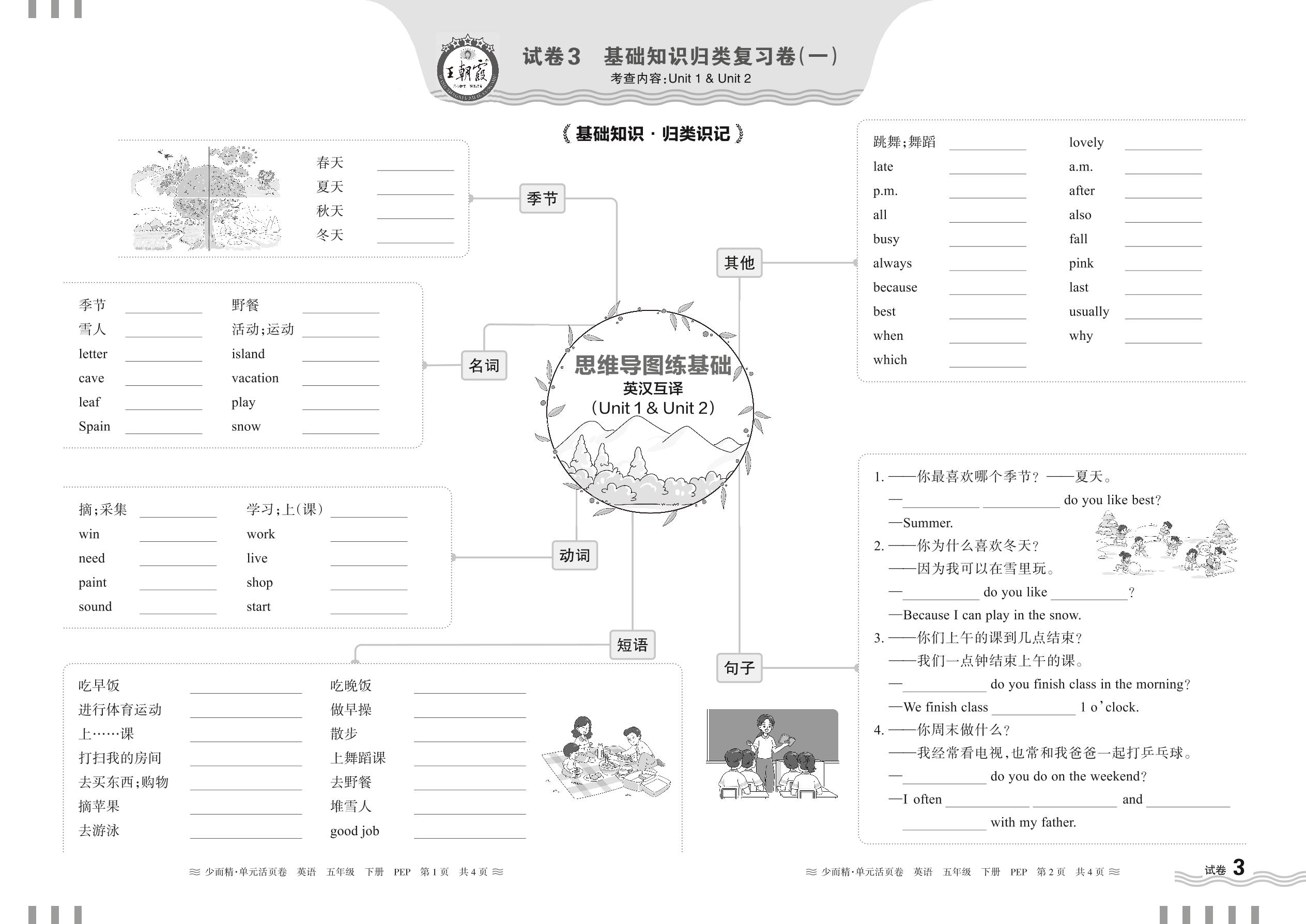 2024春下册五年级英语人教PEP版 Unit 1-2基础知识归类复习卷(一)【3】