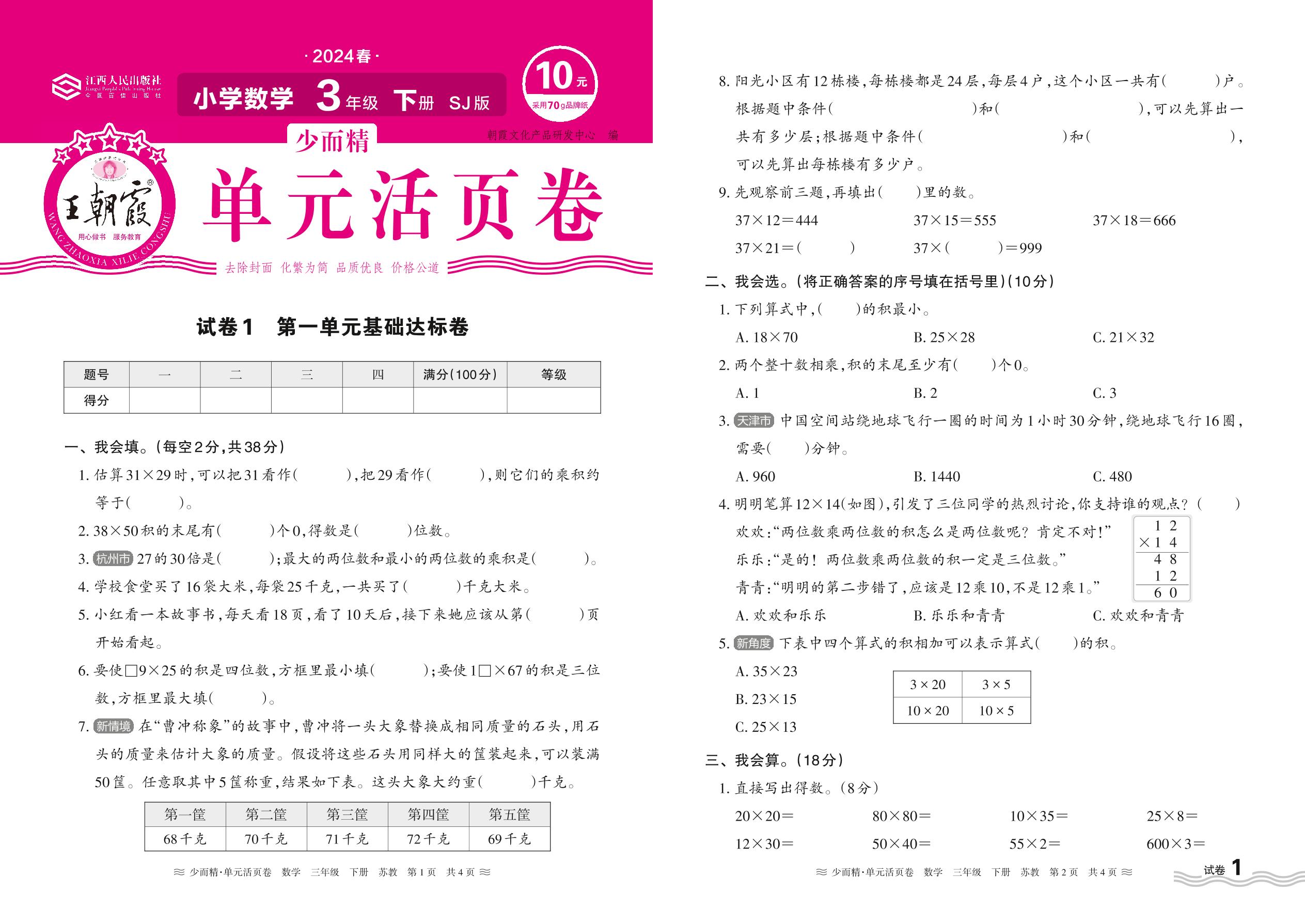 2024春下册三年级数学苏教版 第一单元基础达标卷【1】