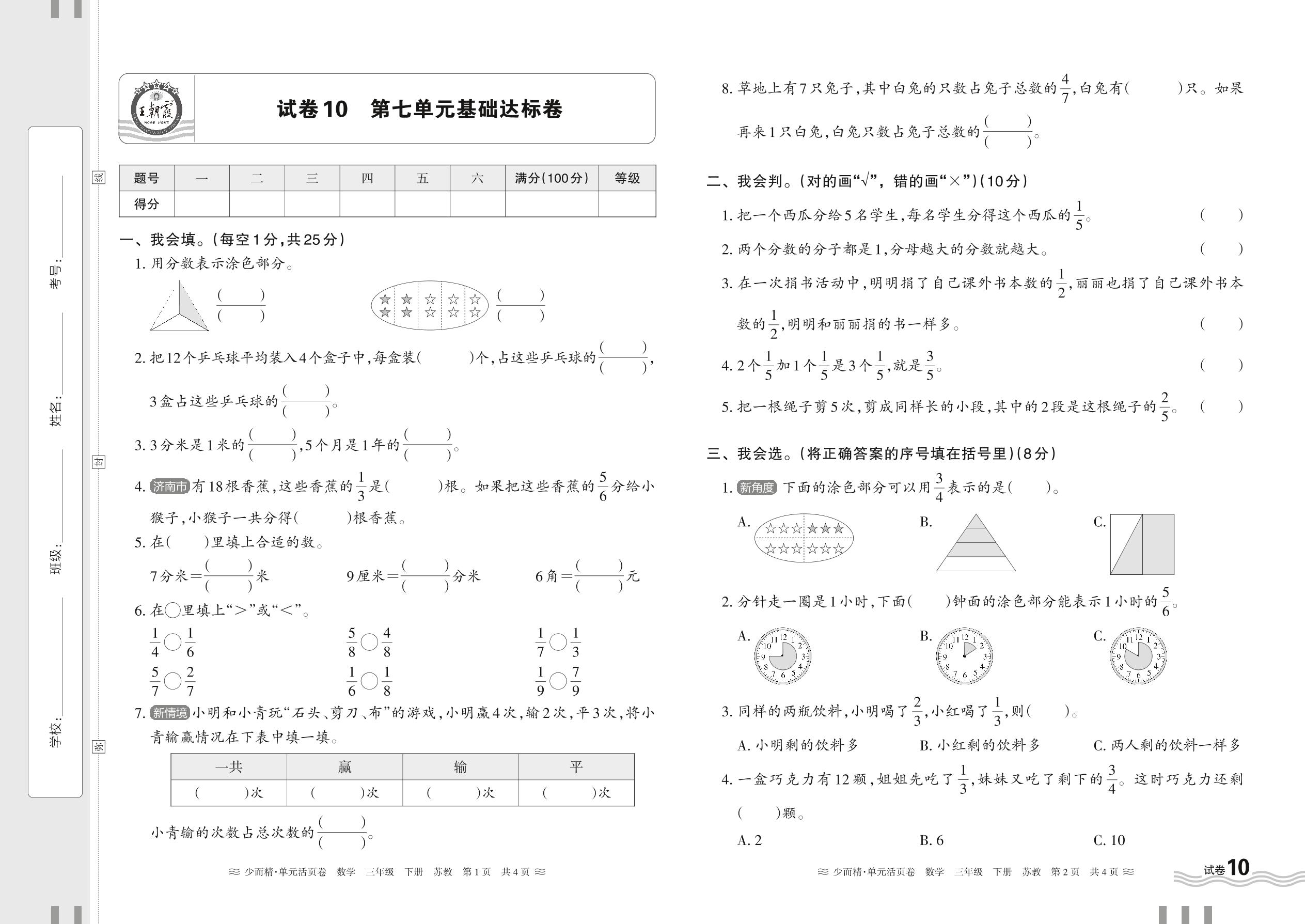 2024春下册三年级数学苏教版 第七单元基础达标卷【10】