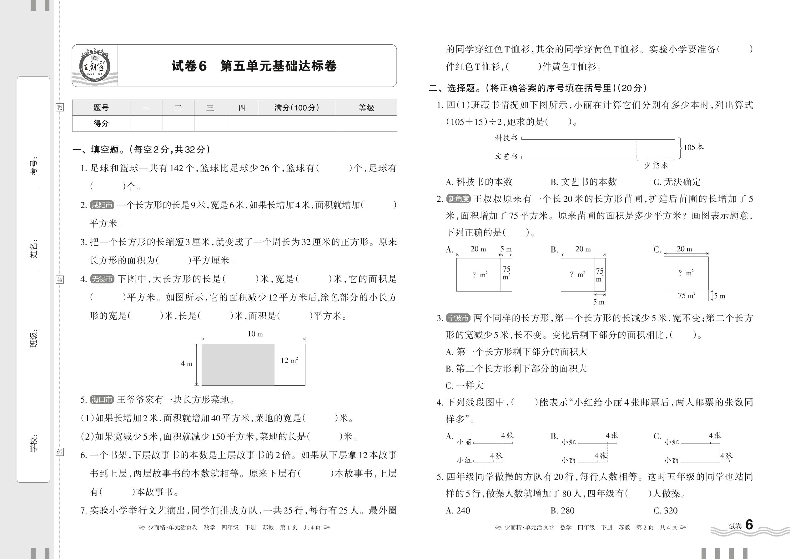 2024春下册四年级数学苏教版 第五单元基础达标卷【6】