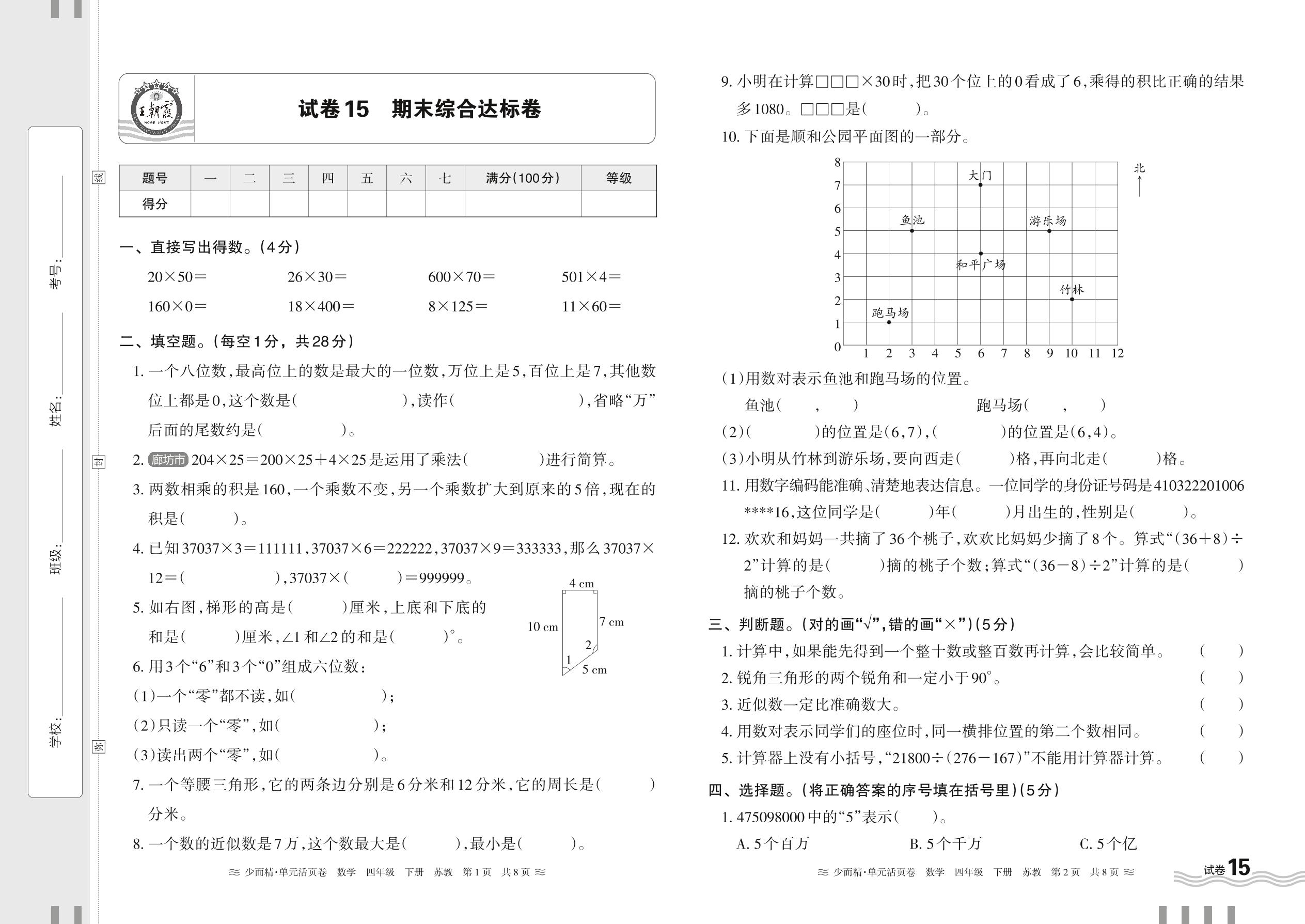 2024春下册四年级数学苏教版 期末综合达标卷【15】