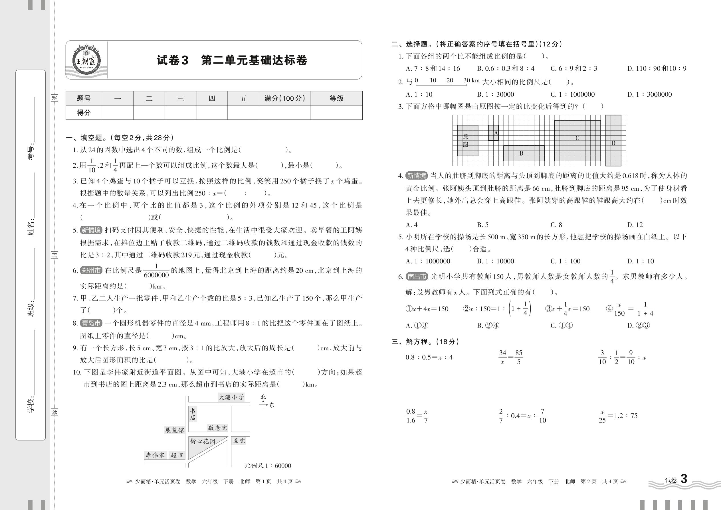 2024春下册六年级数学北师版 第二单元基础达标卷【3】