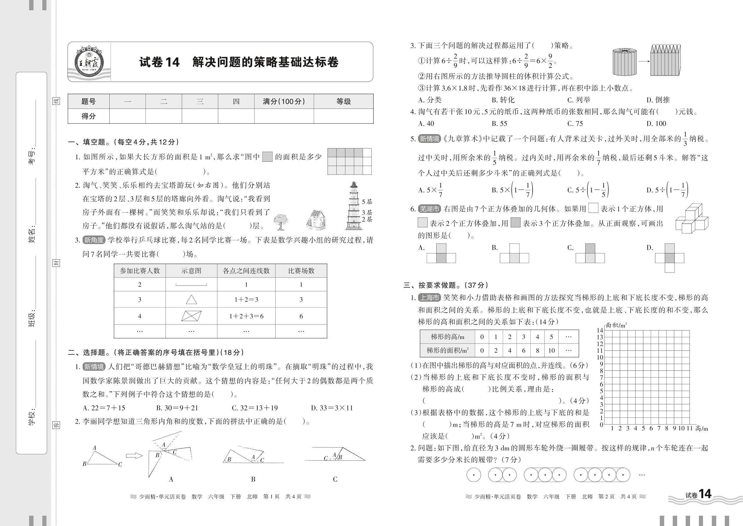 2024春下册六年级数学北师版 解决问题的策略基础达标卷【14】