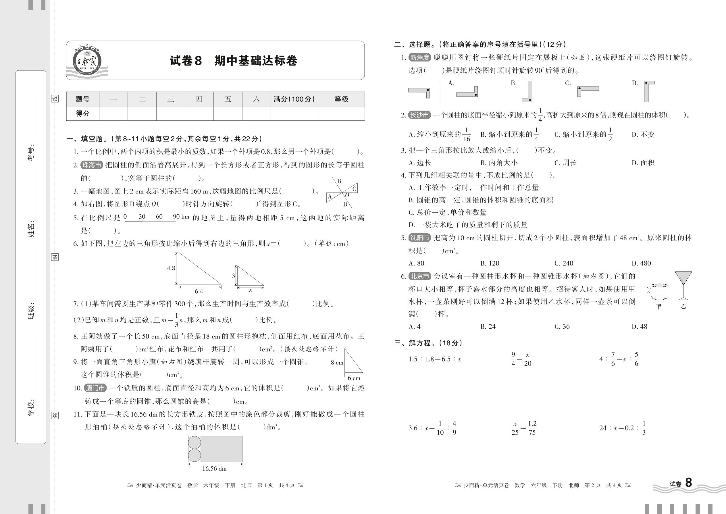 2024春下册六年级数学北师版 期中基础达标卷【8】