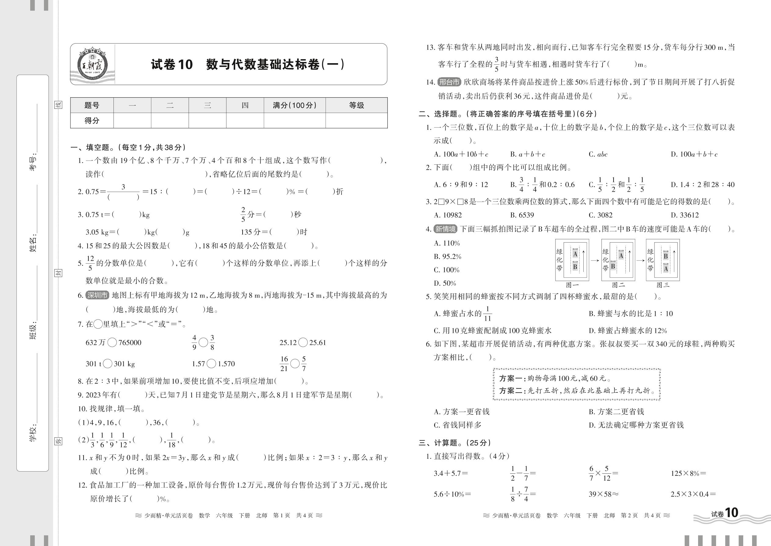 2024春下册六年级数学北师版 数与代数基础达标卷(一)【10】