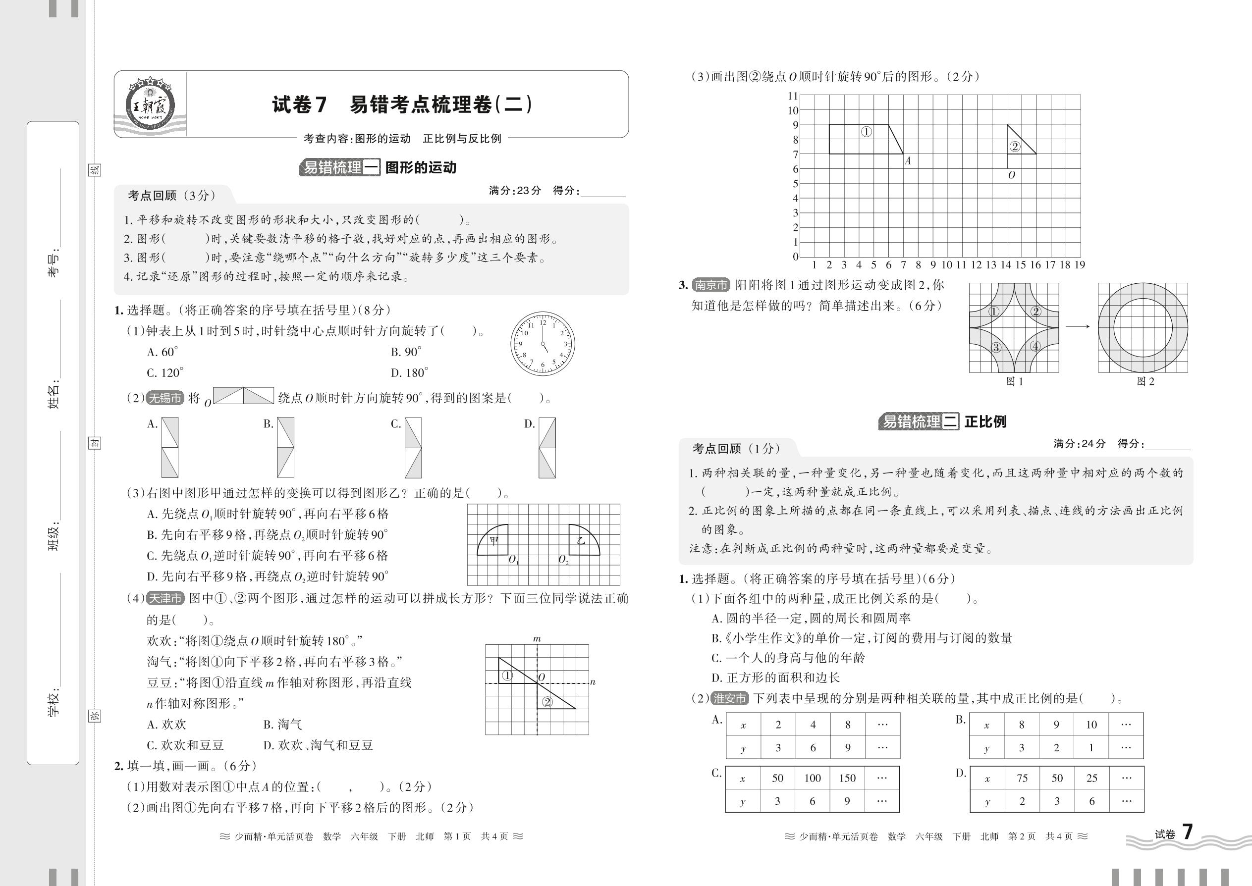 2024春下册六年级数学北师版 易错考点梳理卷(图形的运动 正比例与反比例)【7】