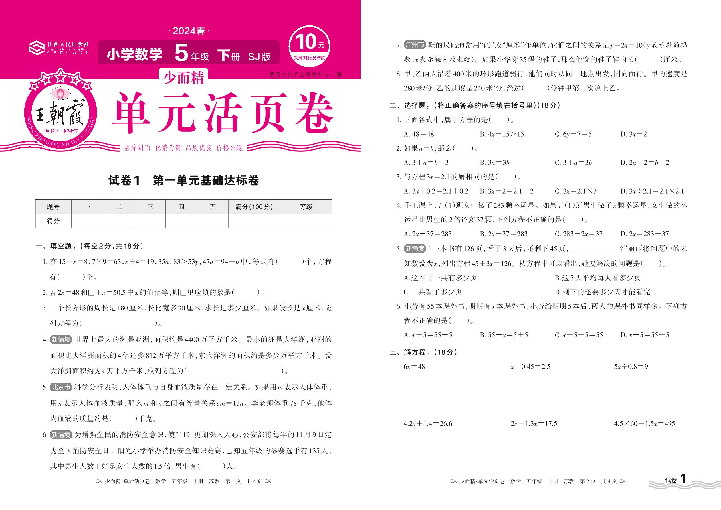 2024春下册五年级数学苏教版 第一单元基础达标卷【1】