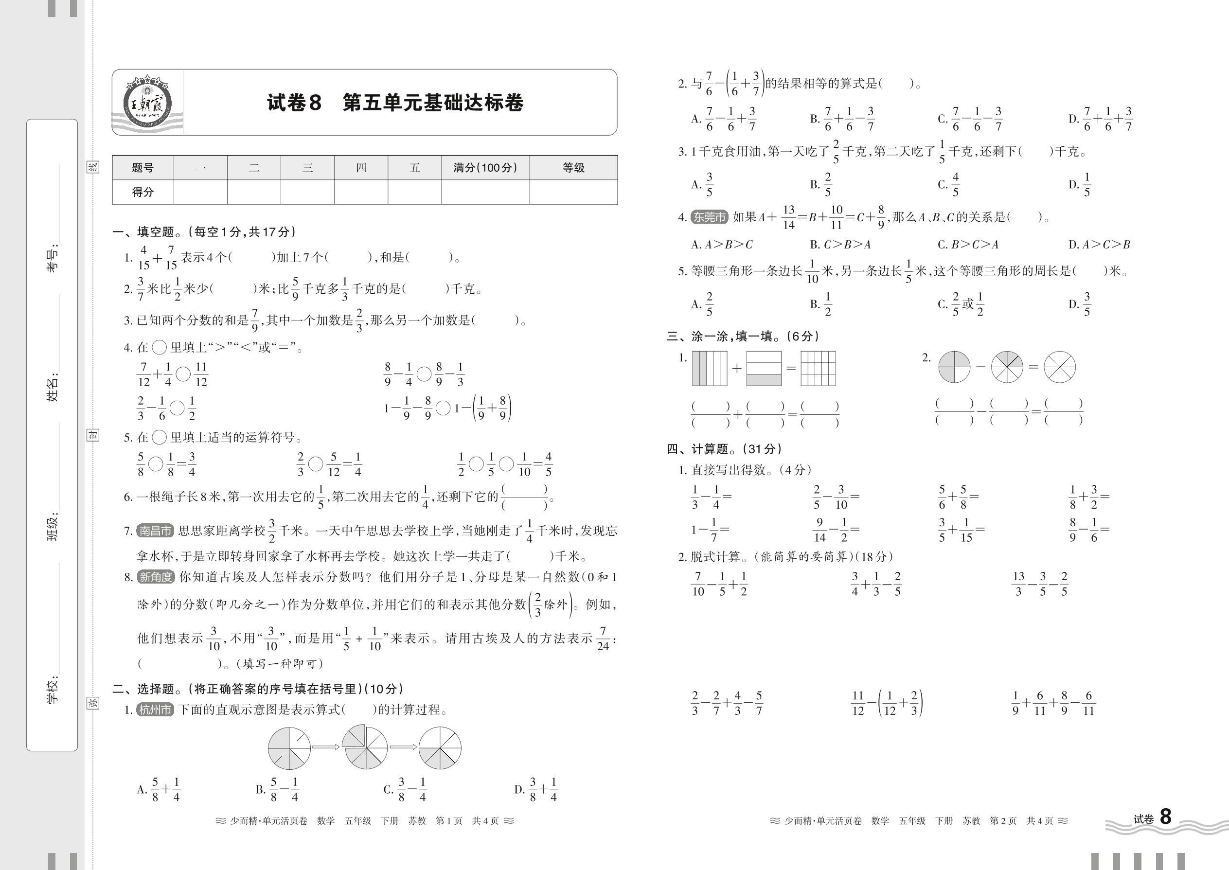 2024春下册五年级数学苏教版 第五单元基础达标卷【8】