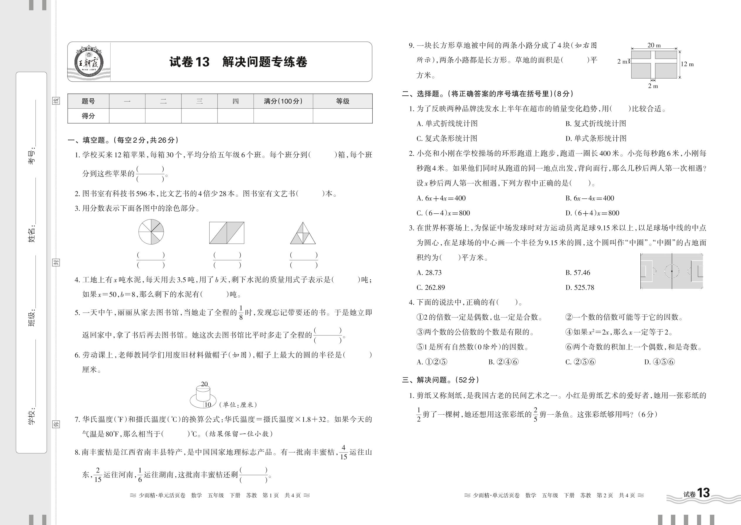2024春下册五年级数学苏教版 解决问题专练卷【13】