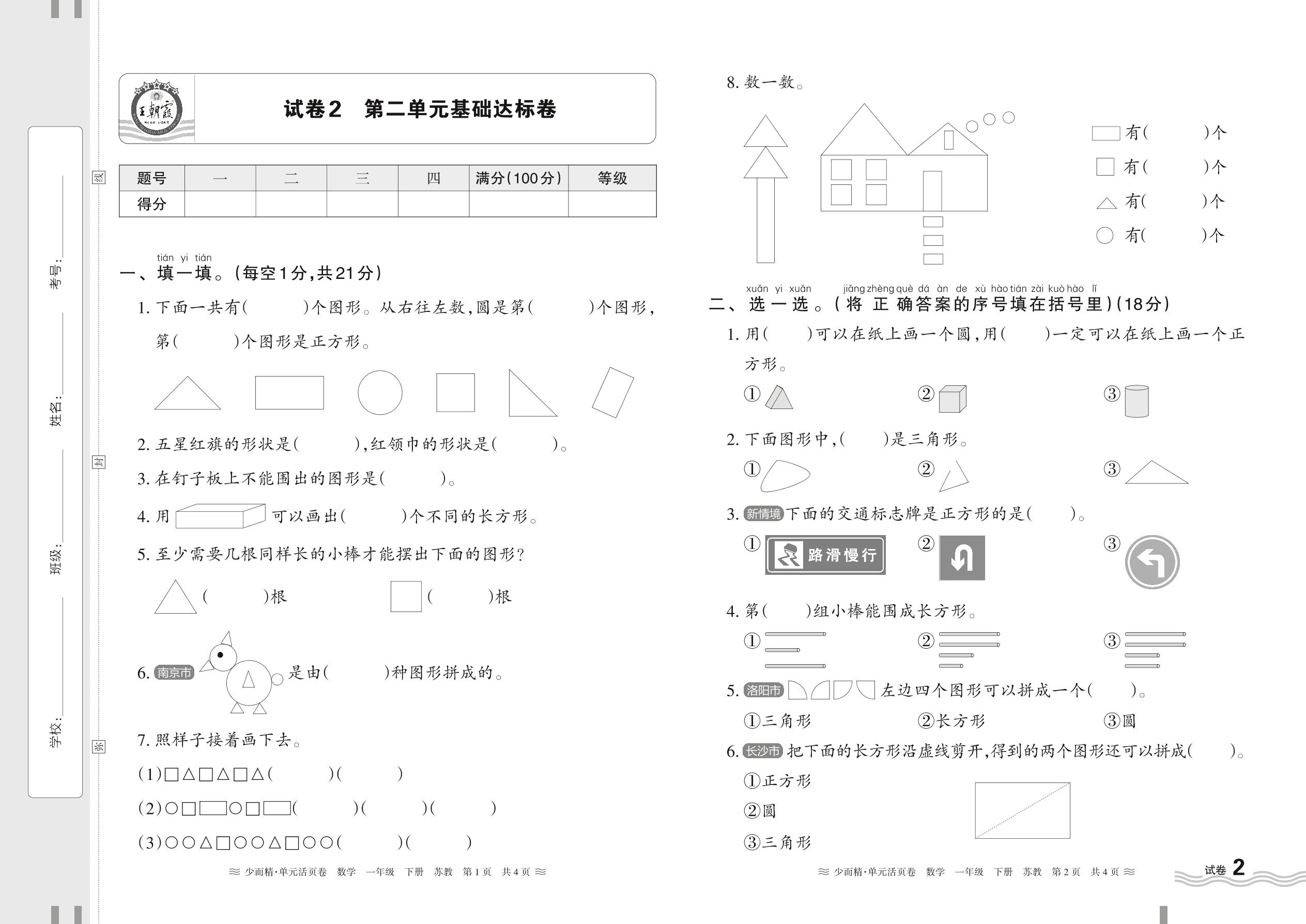 一年级数学苏教版下册单元卷