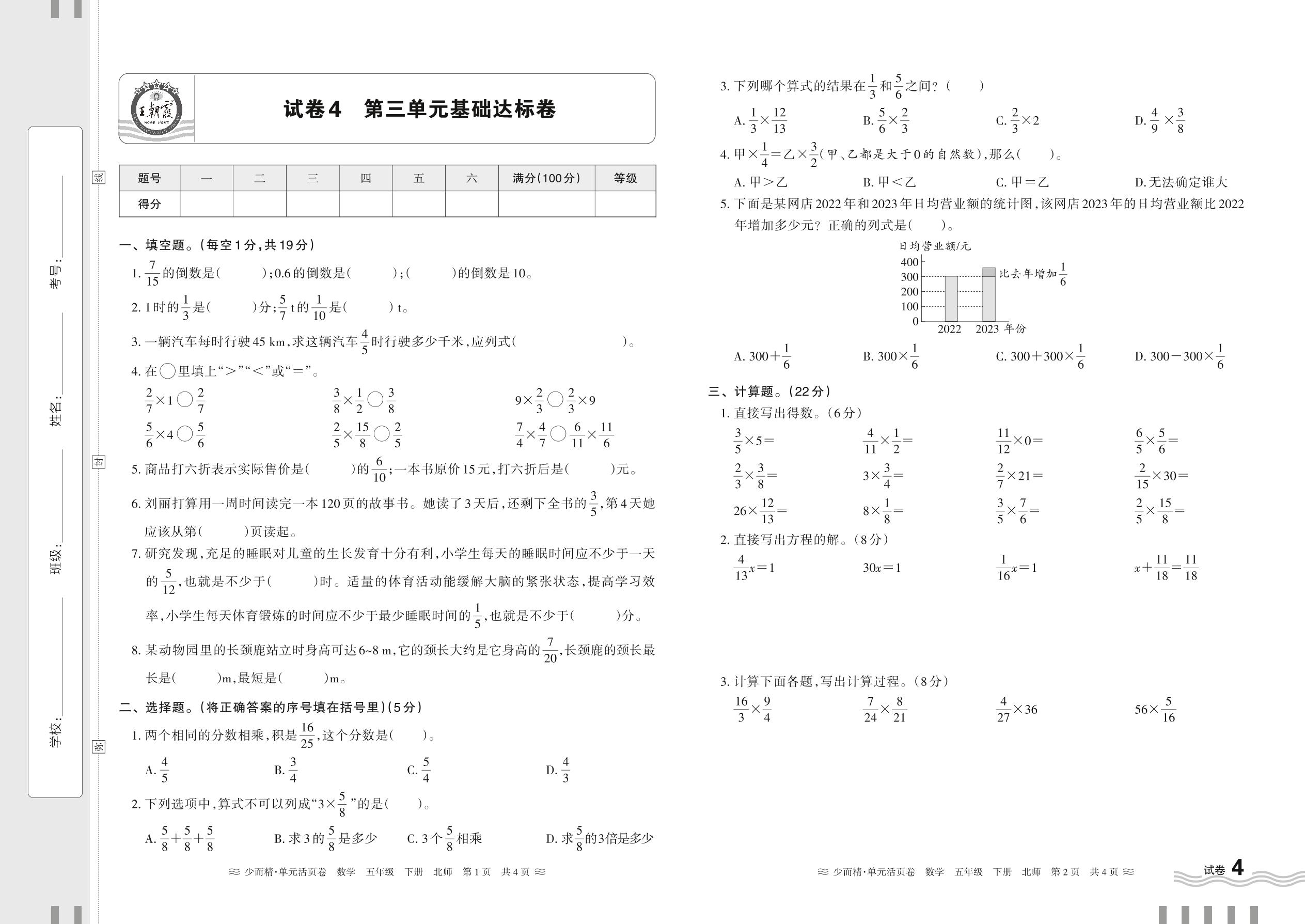2024春下册五年级数学北师版 第三单元基础达标卷【4】