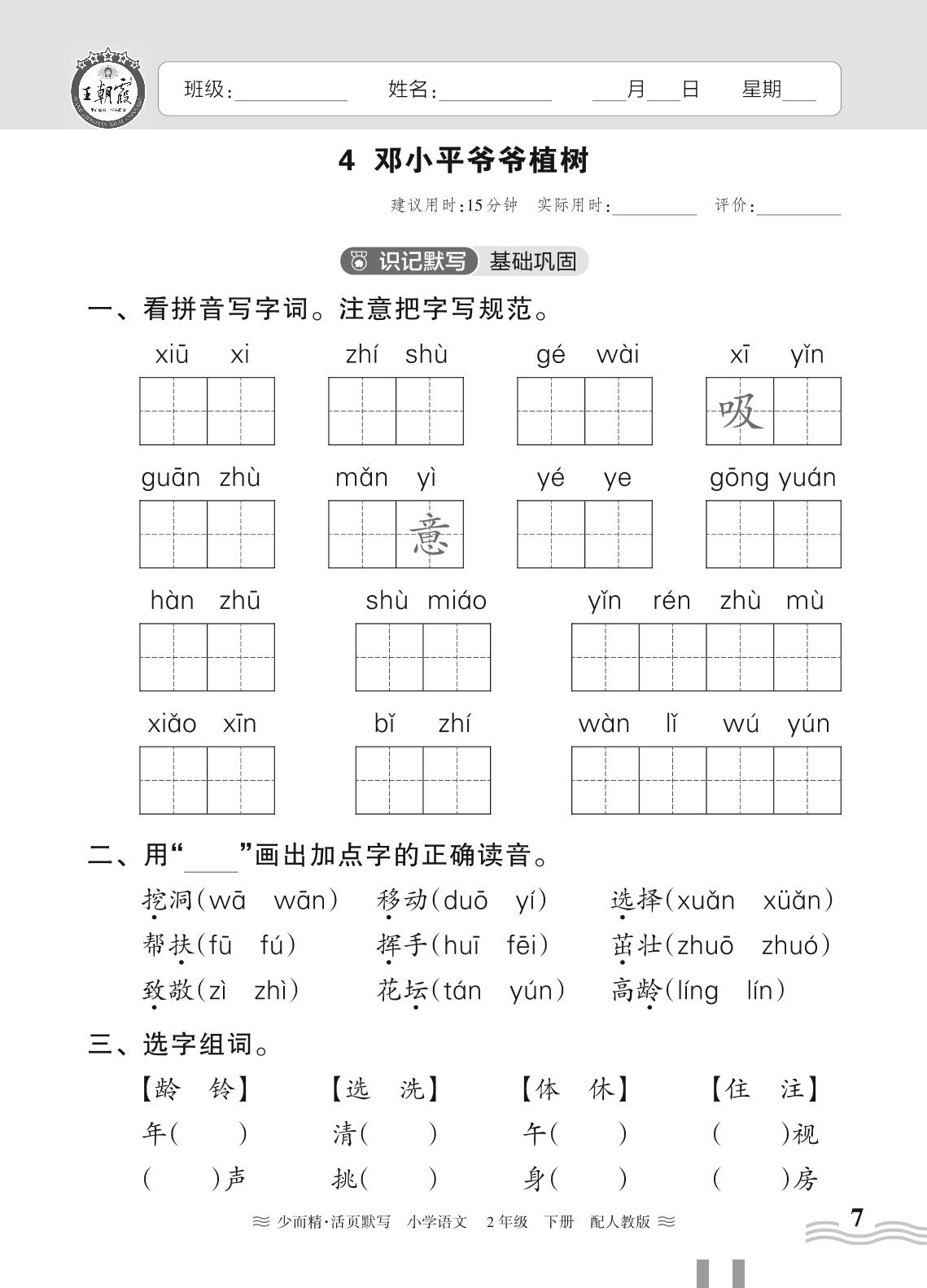 2024春下册二年级语文人教版 第一单元——4. 邓小平爷爷植树