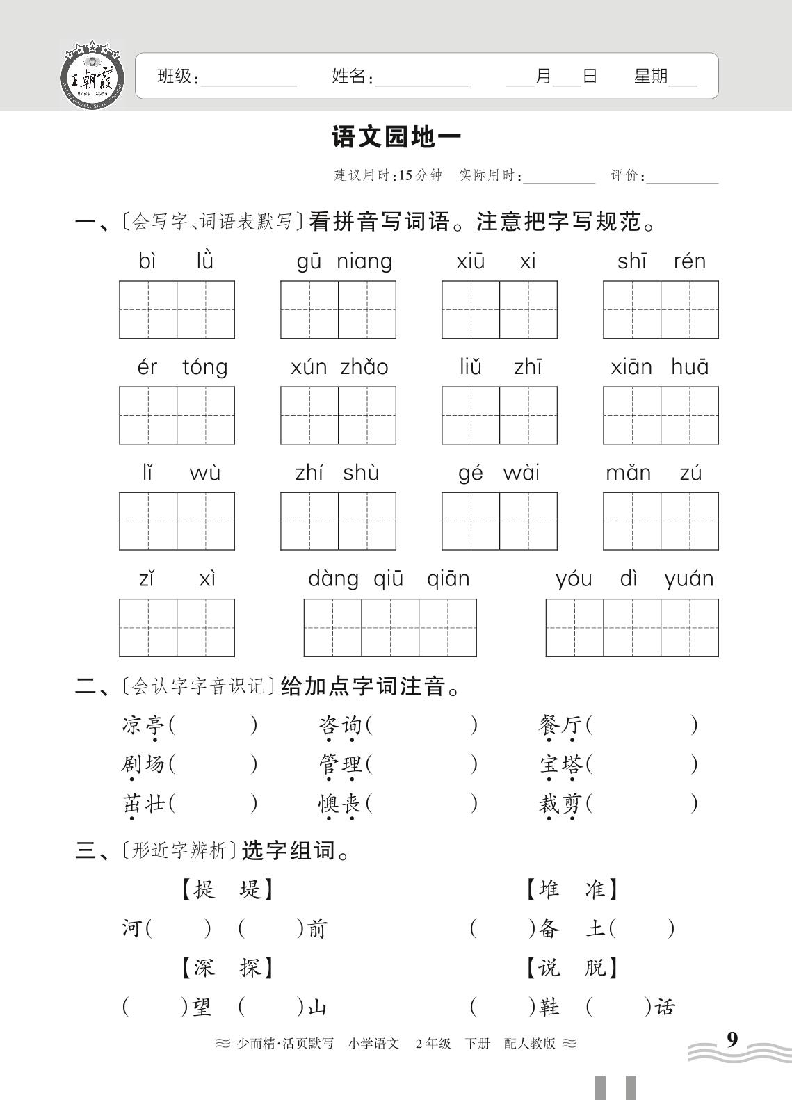2024春下册二年级语文人教版 第一单元——语文园地一