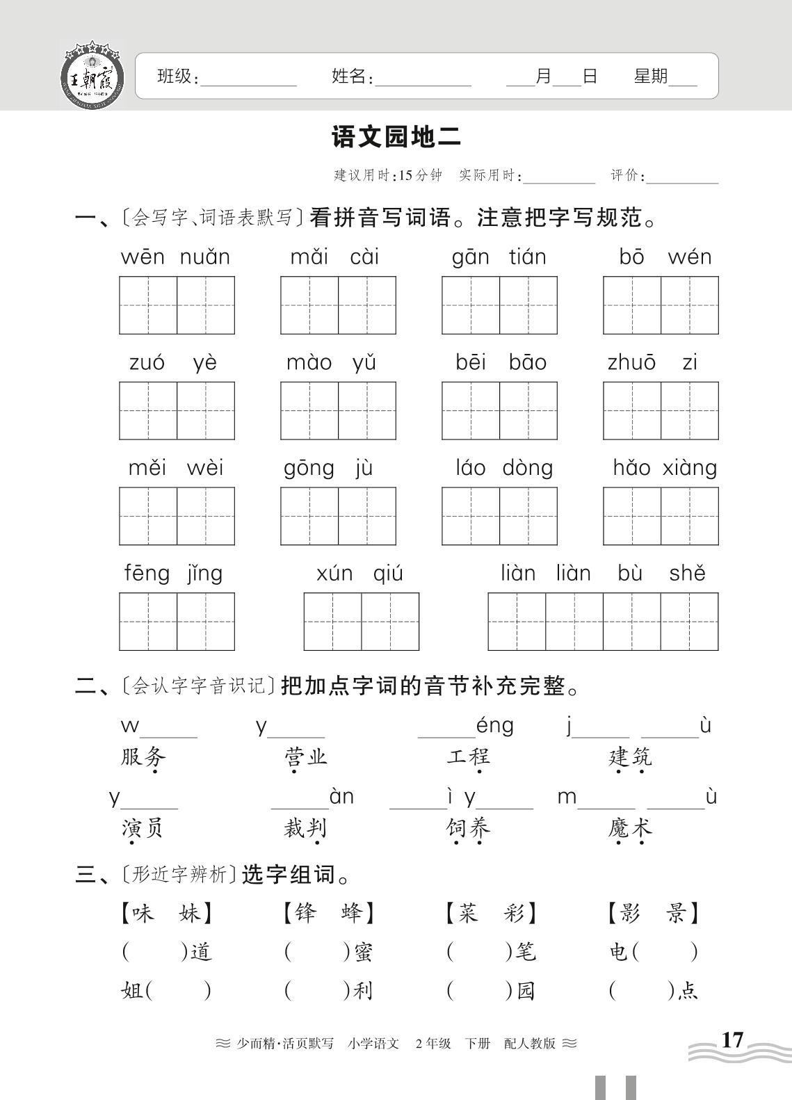 2024春下册二年级语文人教版 第二单元——语文园地二
