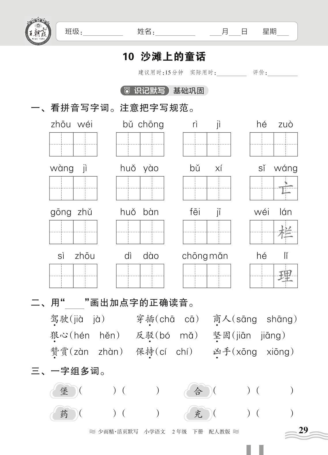 2024春下册二年级语文人教版 第四单元——10. 沙滩上的童话