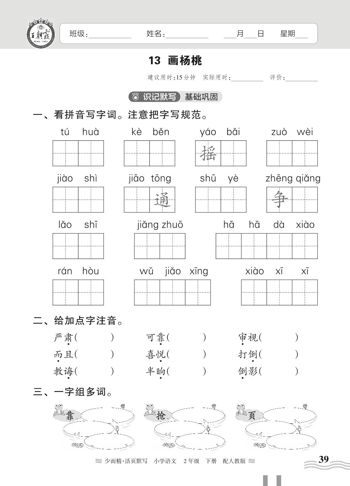 2024春下册二年级语文人教版 第五单元——13. 画杨桃