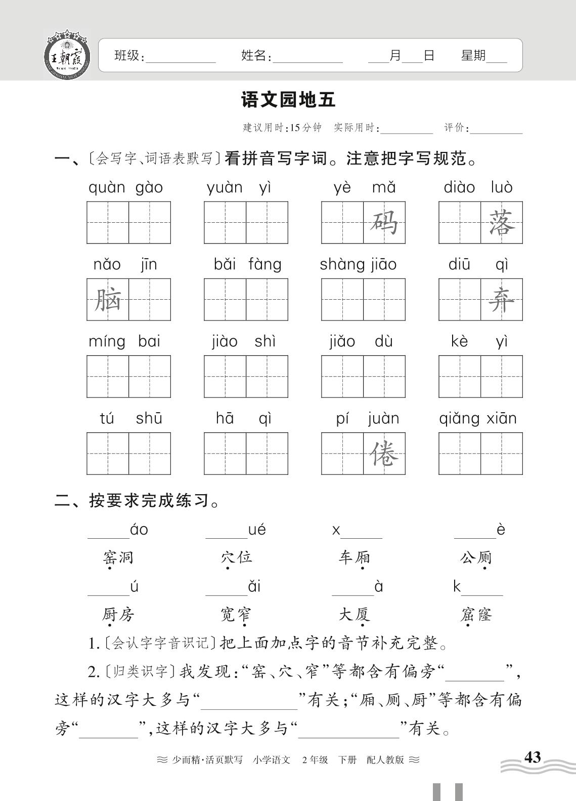 2024春下册二年级语文人教版 第五单元——语文园地五