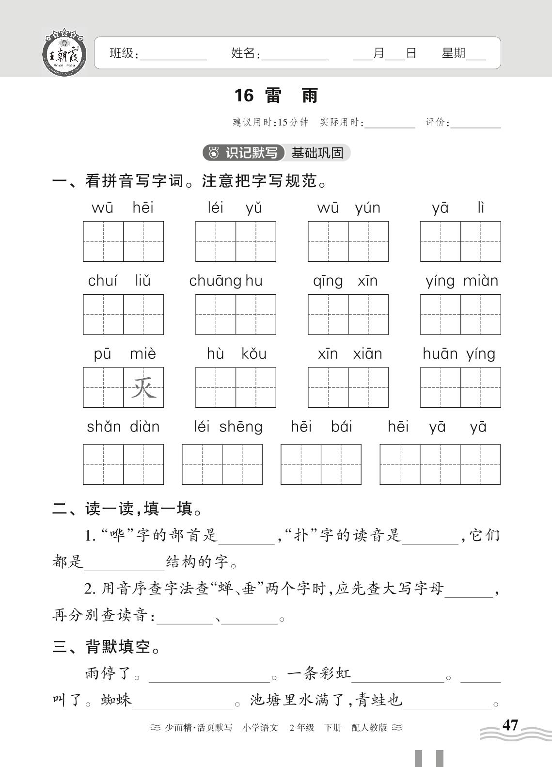 2024春下册二年级语文人教版 第六单元——16. 雷雨