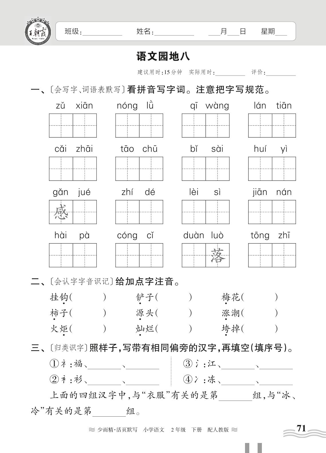 2024春下册二年级语文人教版 第八单元——语文园地八