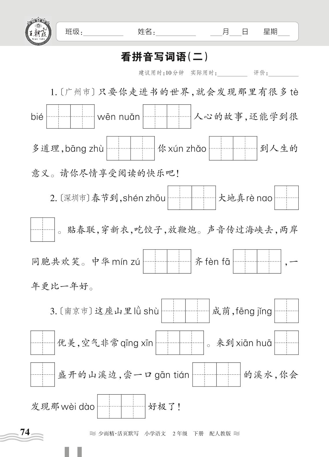 2024春下册二年级语文人教版 期末真题归类复习——看拼音写词语(二)