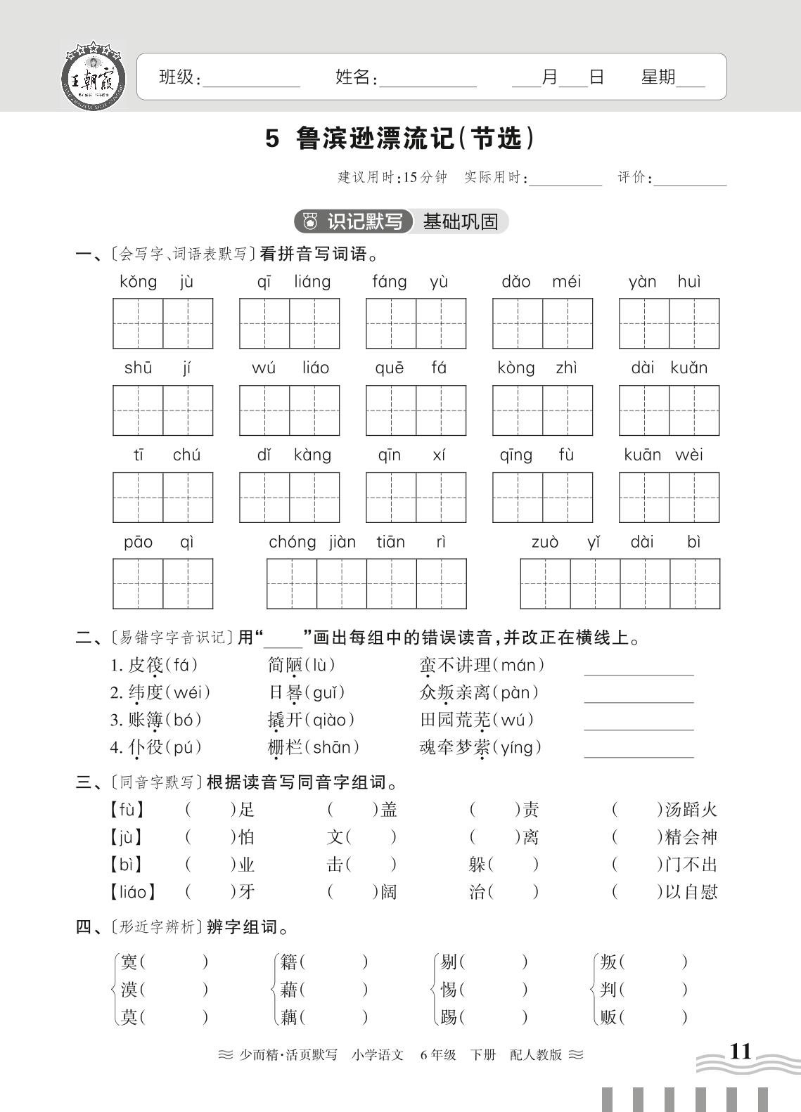 2024春下册六年级语文人教版 第二单元——5. 鲁滨逊漂流记(节选)