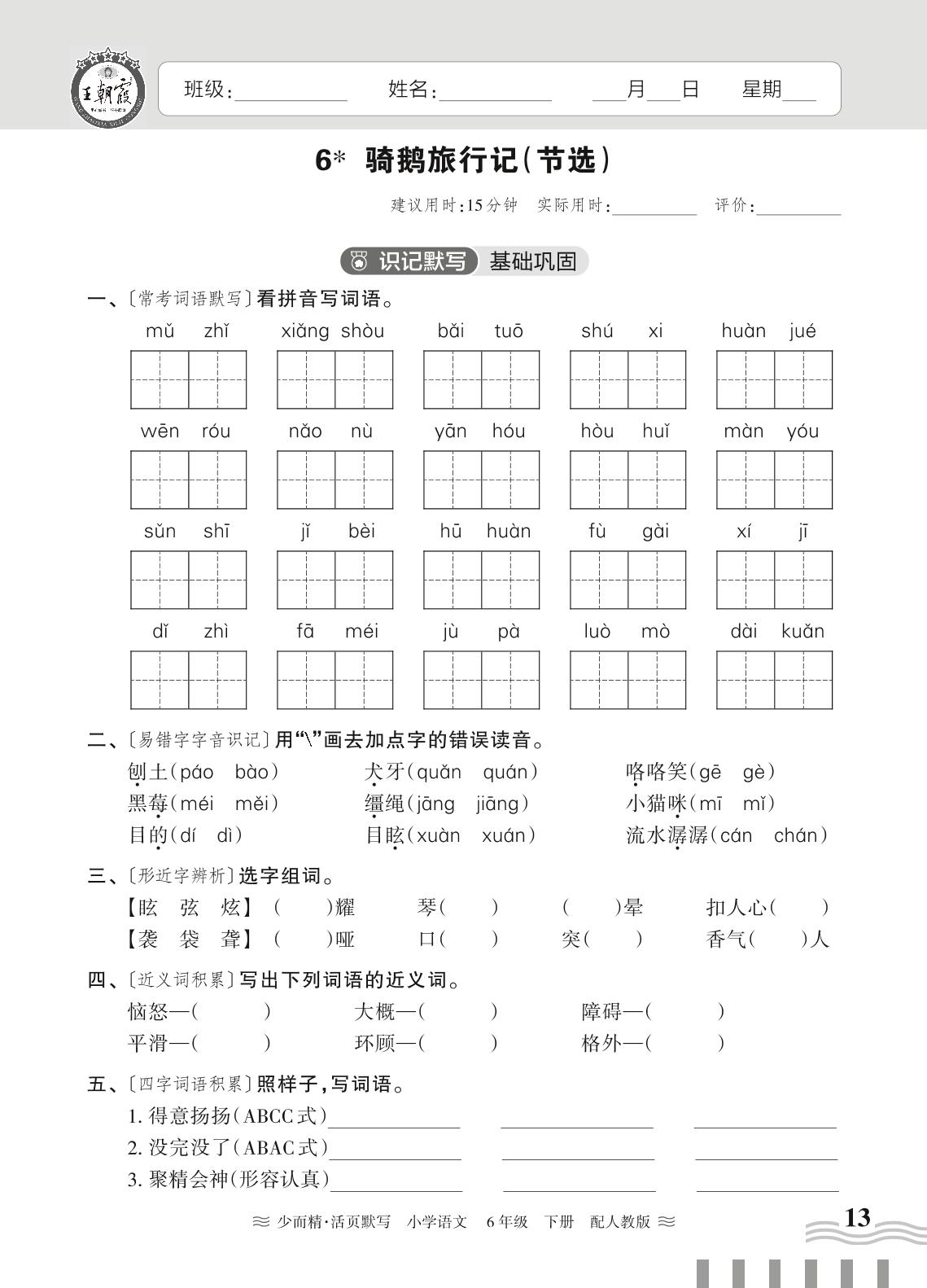 2024春下册六年级语文人教版 第二单元——6. 骑鹅旅行记(节选)