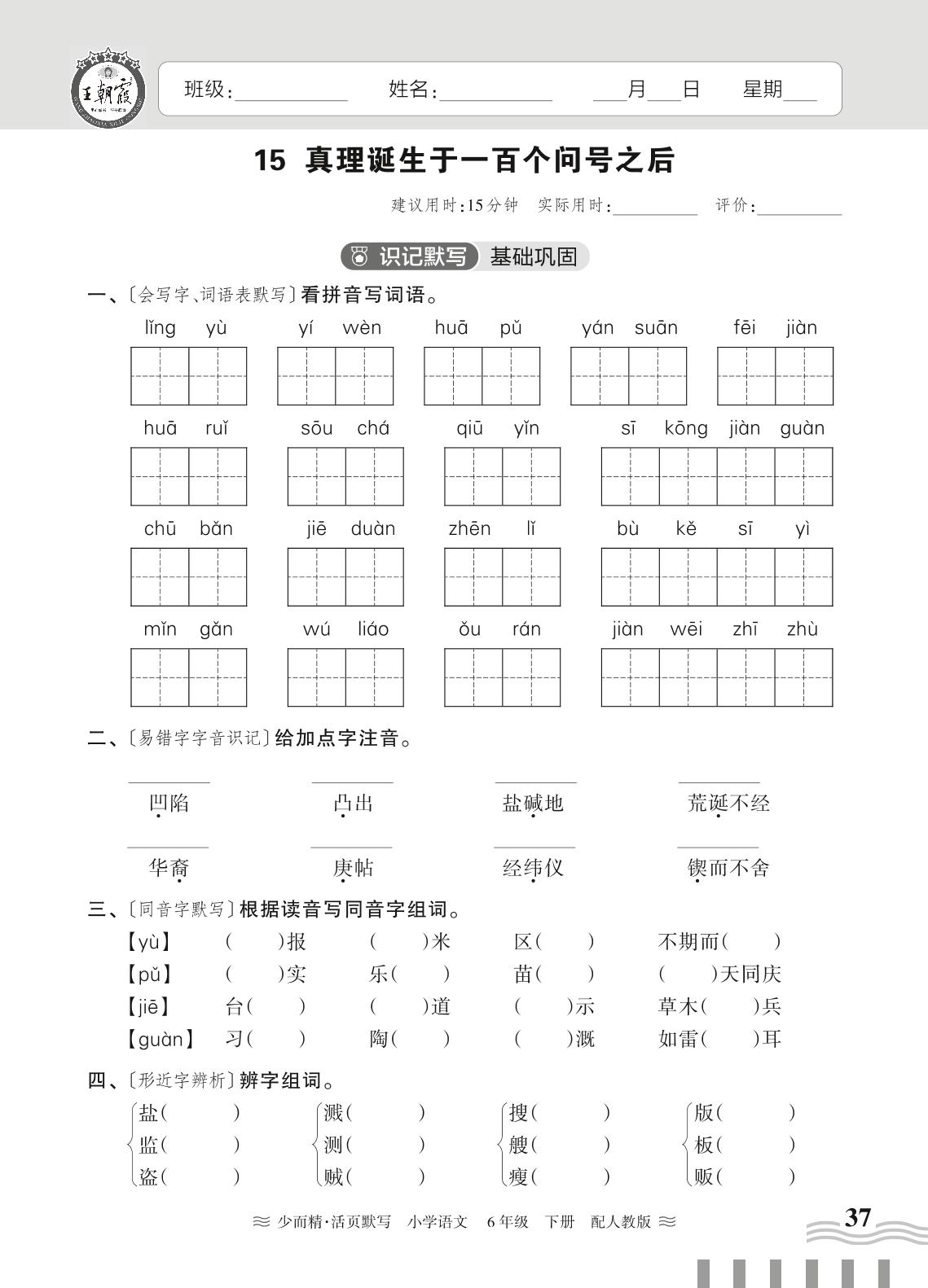 2024春下册六年级语文人教版 第五单元——15. 真理诞生于一百个问号之后