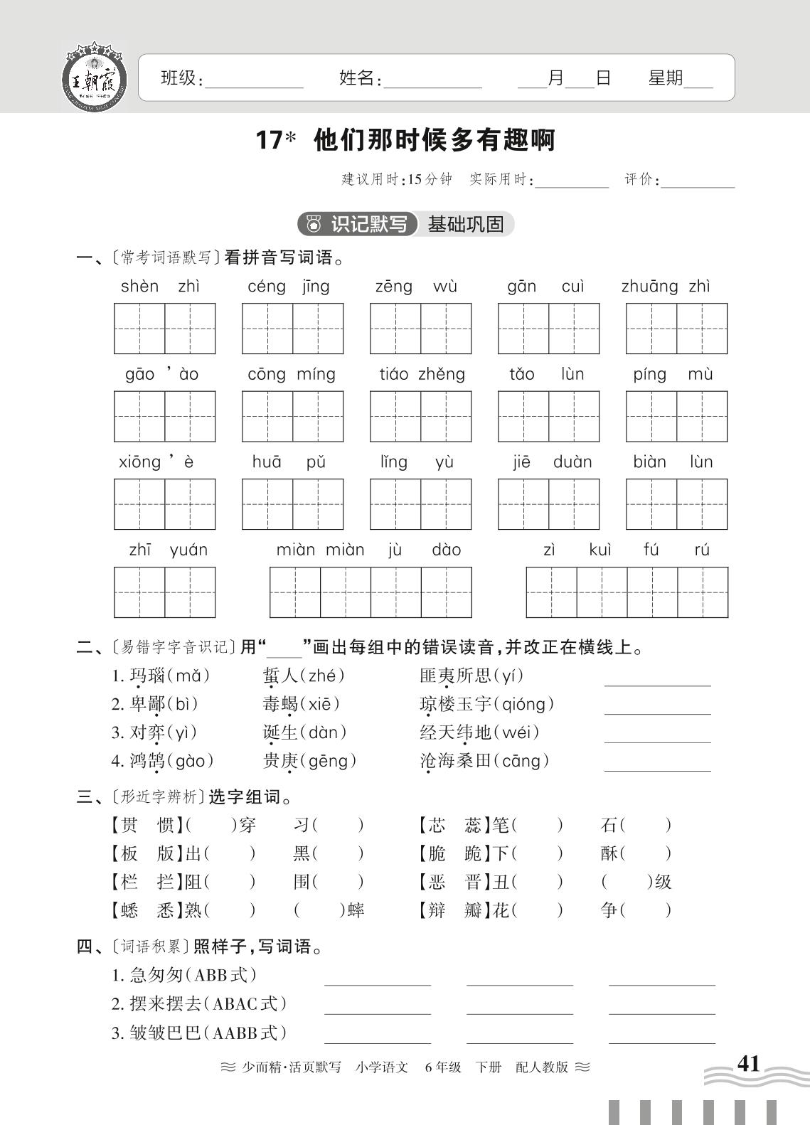 2024春下册六年级语文人教版 第五单元——17. 他们那时候多有趣啊