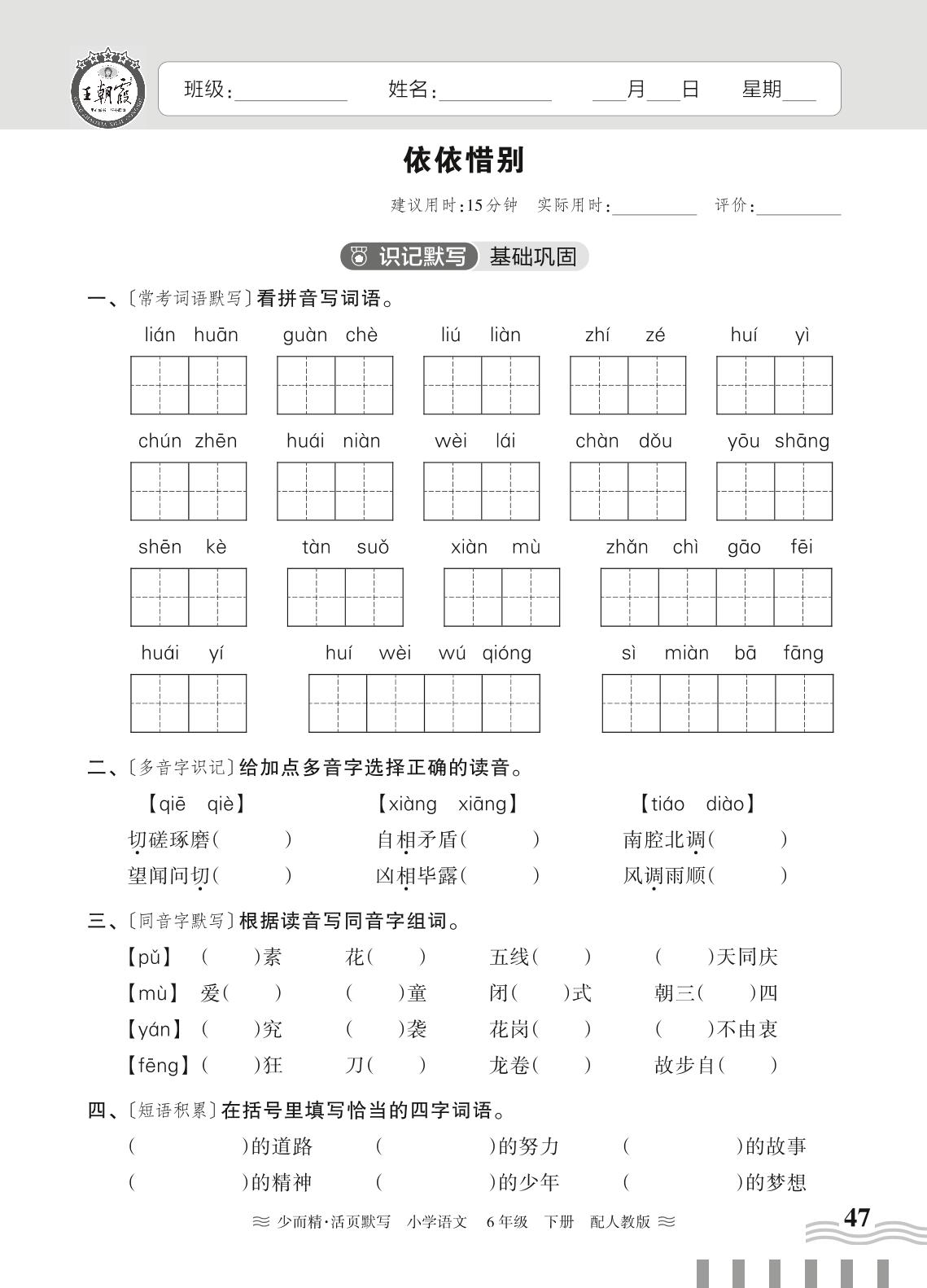 2024春下册六年级语文人教版 第六单元——依依惜别